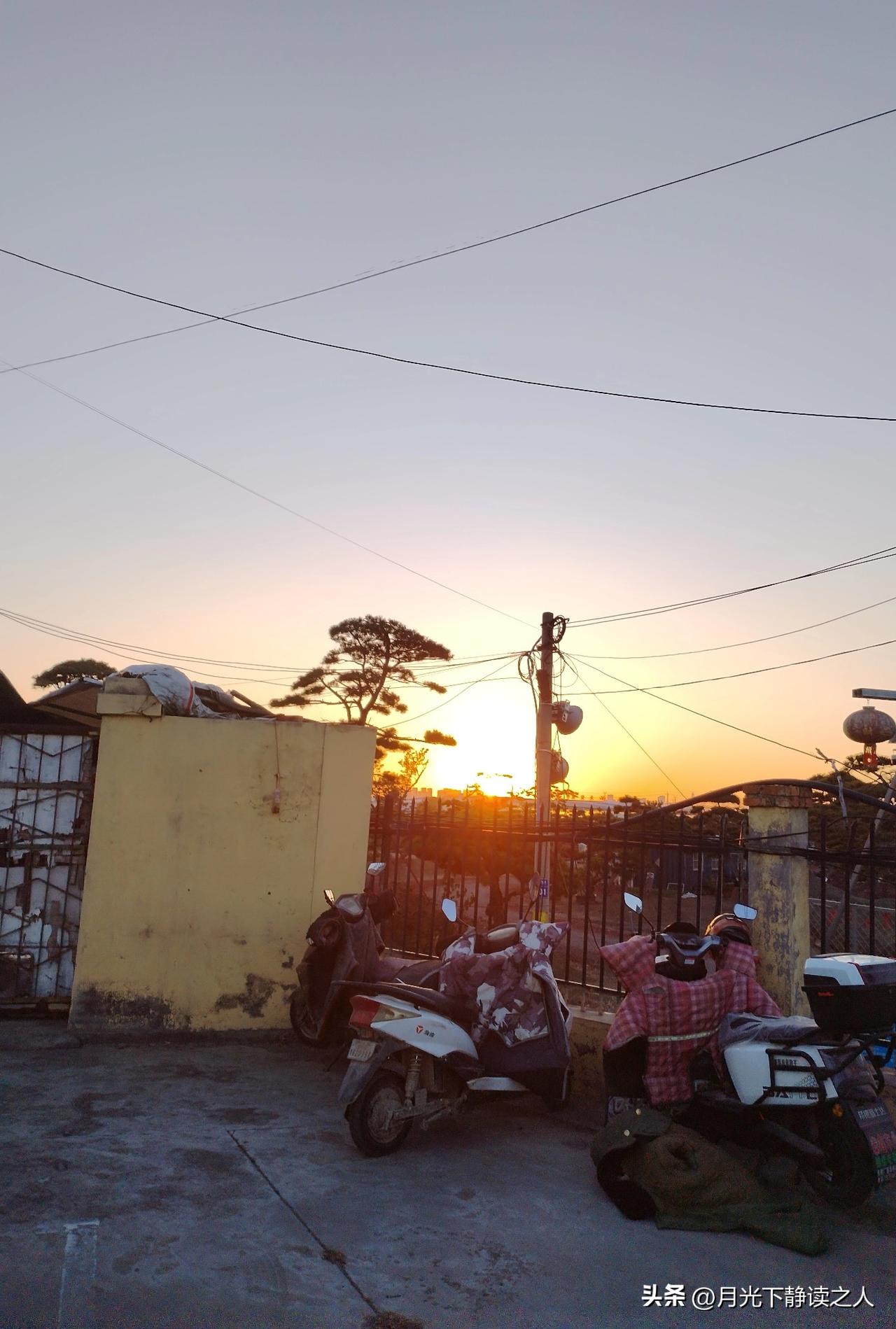 今天下班了!太阳这是也要下班了吗? 就让太阳把一天劳累和疲惫通通带走吧!带着好的心情回家鳓! 一抬头就撞进这橘色的黄昏里。 电动车裹着旧布,跟晒褪色的黄墙凑一堆,电线在天上扯得歪歪扭扭,像没写完的草稿。太阳快沉下去的时候最软,把松树尖儿染成金边,连电线杆子都裹了层暖光。 风慢悠悠钻过铁栅栏,带着点土腥味,混着远处不知道谁家的饭香。这日子没多好,可这晃眼的黄昏往这儿一搁,就觉得挺踏实。