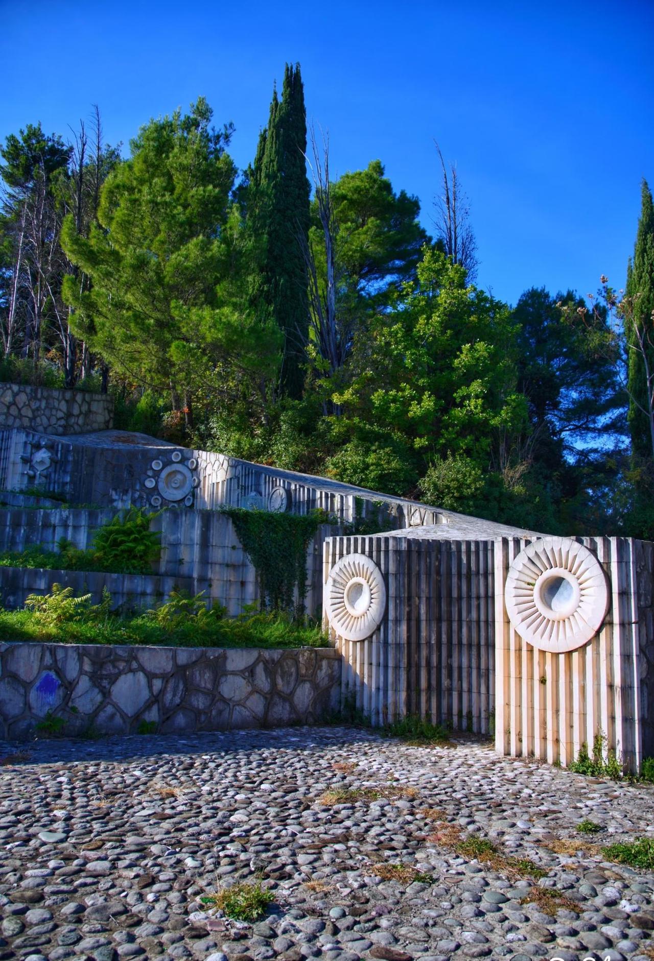 【南斯拉夫纪念碑第十一站📍Mostar 🇧🇦 ——“这散落满地的石花碎片,可能早已预示着既定结局的到来” 1941年轴心国入侵后,莫斯塔尔发现自己被德国、意大利和乌斯塔沙部队占领。在此期间,这些轴心国部队及其合作者对平民犯下了许多暴行。到1941年8月,有组织的武装抵抗占领已经加强,许多人加入了党派反抗团体。莫斯塔尔是强大的反法西斯抵抗的中心,因此获得了“红色城市”的绰号。参与该运动跨越了种族和宗教界限。1942年5月,游击队杀害了当地三名乌斯塔沙领导人。对此类行为的报复是野蛮的——经常将平民作为人质,然后在公共场所处决他们。到战争结束时,已有1000多名平民以这种方式被杀害。1945年2月14日,莫斯塔尔被第八达尔马提亚游击队解放后,游击队搜查了这座城市,追捕并处决了那些他们认为是合作者的人。 1959年,政府委托建筑师Bogdan Bogdanovic在该市南部郊区的Biskupova Glavica山上建造了一个纪念馆,以纪念莫斯塔尔作为反法西斯据点的重要性。Bogdanovic不仅打算创建一个纪念馆,还打算创建一个完整的墓地建筑群,与在中东或伊特鲁里亚遗址发现的相媲美。 两条对称的、弯曲的鹅卵石人行道蜿蜒上山,它们之间的空间形成了一个级联的水景。它们通向五层宽阔的梯田(反映了城市周围的内雷特瓦山谷陡峭而戏剧性的山坡),由垂直的波浪形混凝土柱隔开。梯田区点綴着630个单独的石碑,上面刻着阵亡士兵的名字。其中约有560人是为游击队战士而成的,他们的遗体被实际埋葬在现场。剩下的70人是象征性的,代表那些从未发现遗体的莫斯塔尔游击队。这些名字证明了在党派运动中战斗的广泛种族—塞尔维亚人、克罗地亚人、波斯尼亚人、犹太人等。在顶部露台的中间,在墙壁上设置的不规则圆形宇宙图案前,矗立着一个大的圆形混凝土喷泉。 全称:Partisan Memorial Cemetery in Mostar。这是一座很大型的纪念碑,离市区不远,不过原本铺在每一阶上的花型墓碑在几年前一次克族激进分子的打砸中破坏殆尽。“铁托死了”,然后呢?内雷特瓦河分隔的不只是一座城,而是人心。 推荐指数:⭐️⭐️⭐️⭐️⭐️ 交通便捷:⭐️⭐️⭐️⭐️⭐️⭐️ 巴尔干半岛 南斯拉夫 纪念碑 brutalism 建筑 摄影 二战
