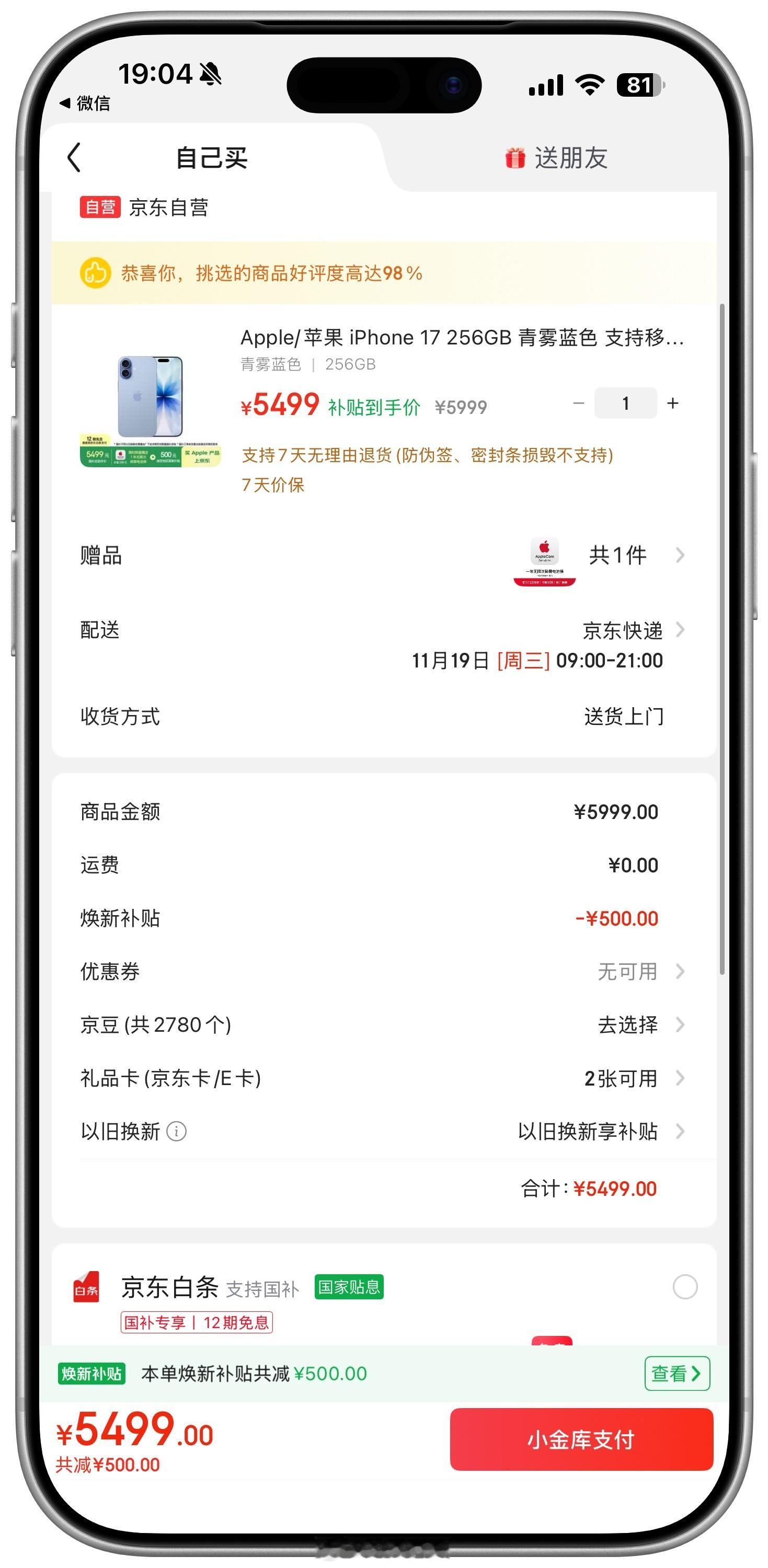 卧槽!这价格无敌啊东子iPhone17256版本补贴后到手5499并且赠送一