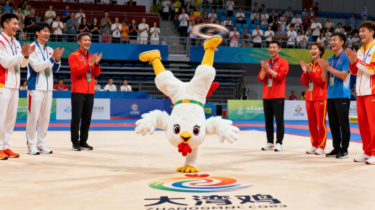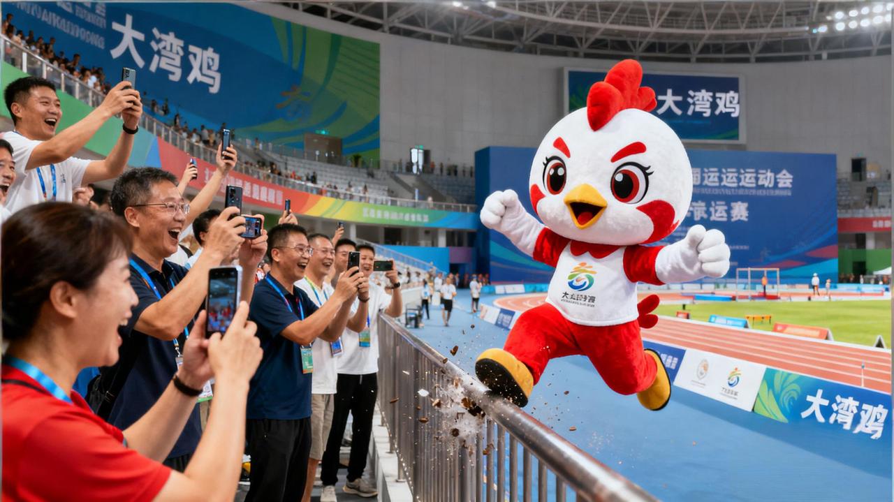 全运顶流“大湾鸡”杀疯了!吉祥物玩梗出圈,武术少年藏背后 十五运会最火“显眼包”非吉祥物“喜洋洋”“乐融融”莫属!这对以中华白海豚为原型的萌物,本是粤港澳同心的象征——头顶木棉红、紫荆紫、莲花绿三色水花,藏着三地携手的深意,却因圆润身形和粉白配色,被网友精准戳中“干饭DNA”。 白色款神似白切鸡、粉色款像极豉油鸡,“大湾鸡”的民间昵称一喊就爆,一场“指豚为鸡”的玩梗狂欢就此开启。网友二创脑洞飞起:蹦跳撞栏杆的名场面被做成表情包,配文“广东人看了都想加蘸料”;粤语段子“大湾鸡够晒劲,全运赛场最盏鬼”刷屏社交平台。设计师更是“打不过就加入”,直言“只要大家喜欢,叫啥都可爱”,官方认同一度让热度再上台阶。 更圈粉的是“大湾鸡”的魔性活力:倒立旋转、跟观众贴贴,甚至偷偷踩水卖萌,这些灵动瞬间都来自12-15岁的武校少年。他们穿着8公斤重的皮套,集训数月每天表演数小时,用未被雕琢的纯真活力赋予吉祥物灵魂。 这场接地气的玩梗,让体育赛事多了烟火气,也让文化符号走进日常。一人一句为全运健儿加油 有“大湾鸡”这个最强气氛组加持,相信健儿们定能在赛场绽放光芒,赛出大湾区的活力与风采! 第十五届全运会