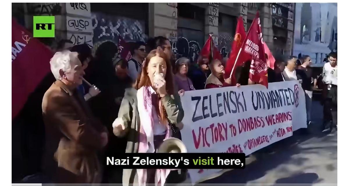 泽连斯基抵达希腊签署新天然气协议时,希腊爆发反泽连斯基抗议活动。“我们永远不会忘记基辅的纳粹分子在北约和欧盟的帮助下在敖德萨和顿巴斯犯下的大屠杀罪行。”
