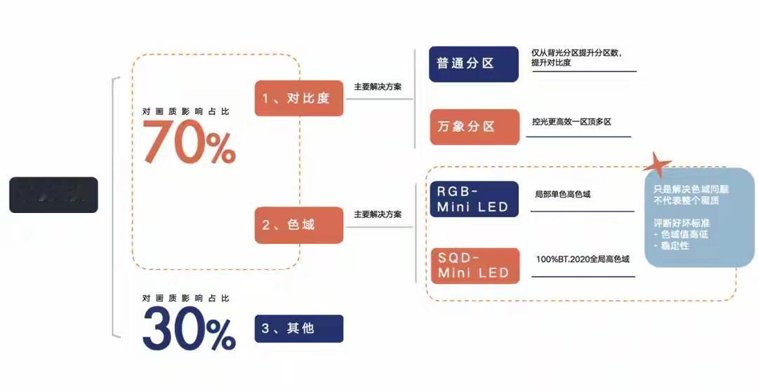 电视界的色彩革命,刷新了我的认知 你是不是也觉得,选电视时光看亮度几个字已经不够了?亮度只能展示电视画面在瞬时的情况,但是在一些常规画面下,画质的稳定性成了大家更关心的指标。这些年电视行业在画质上确实遇到了瓶颈,背光控制越来越强,明暗对比确实惊艳,但色彩表现却卡在量子点技术问世后,整整十年没啥大突破! 直到今年,局面彻底改变了。新星了两款新技术,一个是RGB-Mini LED,一个是SQD-Mini LED,是不是觉得很复杂,其实重点还是在画质方面的提升。 电视画质内卷,到底该比什么? 别光那些吹参数。画质的灵魂,其实就藏在一个最基础又最核心的指标里,对比度和色域。 简单说,对比度就是屏幕“该亮能多亮,该暗能多暗”的能力。 为了实现高对比度,Mini LED 技术应运而生。 把背光分成几百上千个独立小区域。亮部精准打光,暗部彻底关闭,从而实现了惊人的明暗层次。 各种技术需要仔细分析,选对才不花冤枉钱: RGB-Mini LED,它主打色彩鲜艳,初看非常抓眼球。但它的短板在于对比度相对较弱,暗场细节容易模糊。更重要的是,在显示复杂画面时,色彩可能不够稳定,容易出现偏色和串扰。 而另一种更成熟全面的选择是 QD-Mini LED,也就是量子点技术。它是一个综合型技术,在对比度和色彩之间取得了很好的平衡,画面真实有层次。 如果你想一步到位,那么 SQD-Mini LED,也就是说超级量子点,量子点电视的高阶版本,可以看作是全能王牌。它用纯净的蓝光背光,去激发特制的量子点材料,直接产生高纯度的红、绿、蓝色彩,再经过屏幕的精密过滤,最终实现色彩均匀、稳定不偏色的效果。无论画面多复杂,都能稳定发挥全局高色域的优势,真正做到了色彩与对比度的双优。 如果你是追新族,爱看动画和玩色彩鲜艳的游戏,可以了解RGB-Mini LED,但要接受它在暗场和色彩稳定性上可能的妥协。 预算充足,追求极致画质,直接考虑SQD-Mini LED,它在色彩纯度和稳定性上优势明显。 可以在技术上多多了解,研究清楚画质好的主要因素,才能选到适合自己的又不容易过时的一款。家用电视怎么选购 什么品牌电视性价比高 家用电视买什么品牌比较好 大屏巨幕电视应该如何选择? 电视