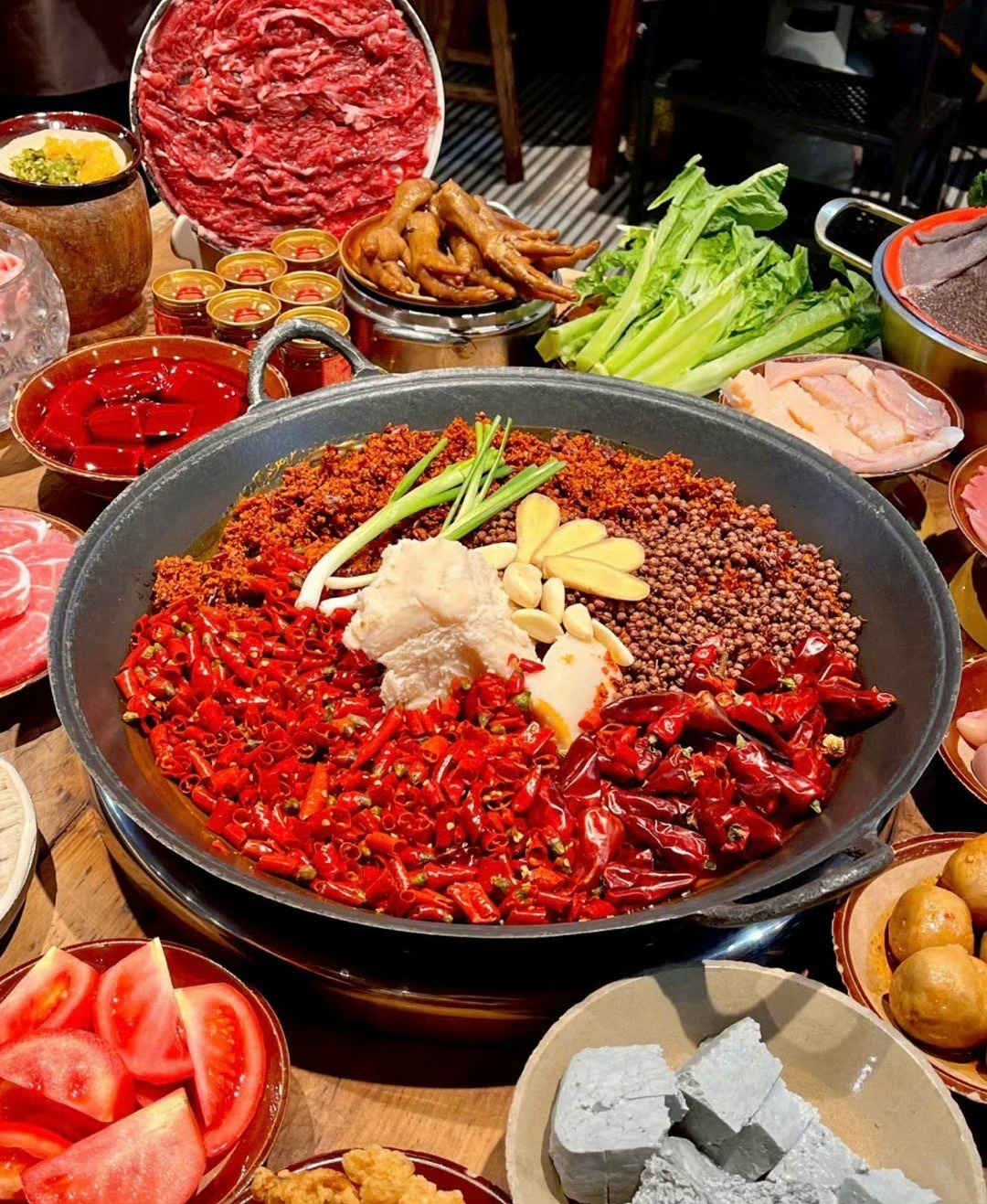 红汤锅底要选牛油醇厚款,涮肉必遵循“七上八下”,毛肚鸭肠脆嫩不柴!素菜最后煮吸满汤汁,蘸料香油蒜泥+少许蚝油是灵魂,配冰粉解辣解腻,这顿直接封神~