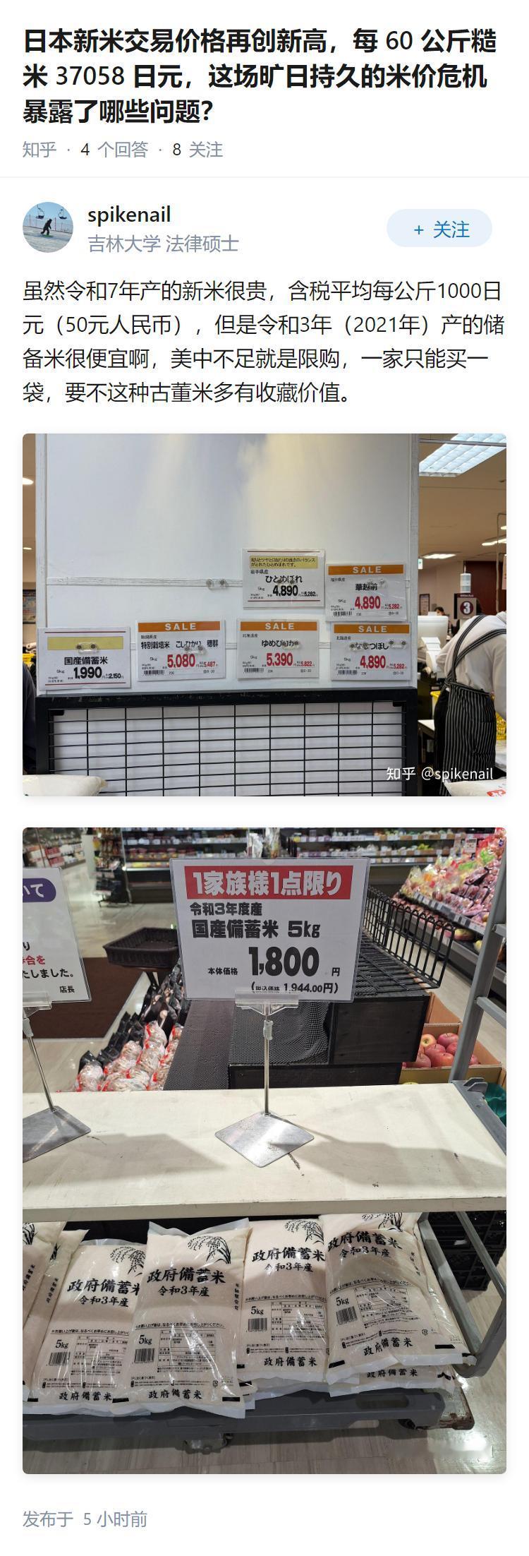 日本新米交易价格再创新高,每60公斤糙米37058日元,这场旷日持久的米