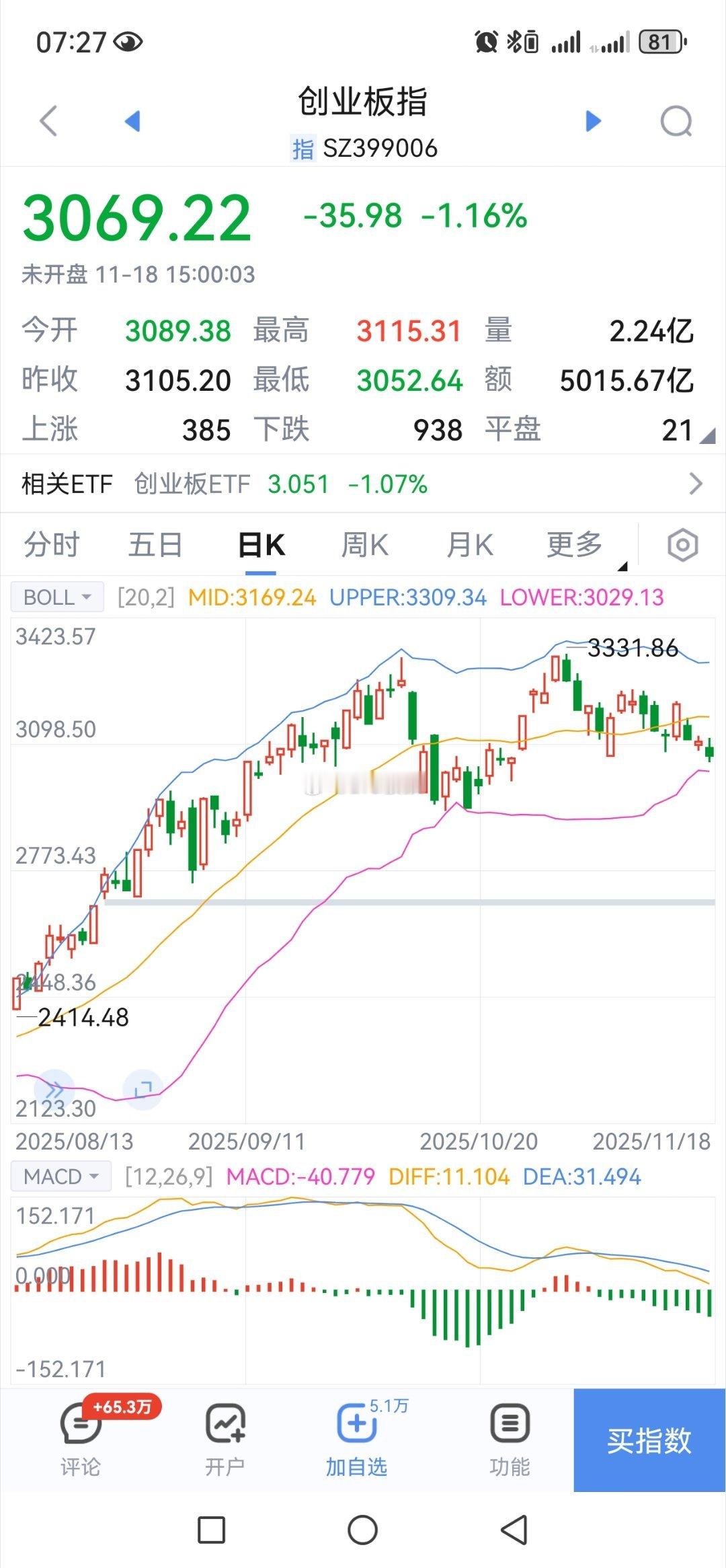 A股创业板指日内跌超1%,早间开盘一度涨近2%