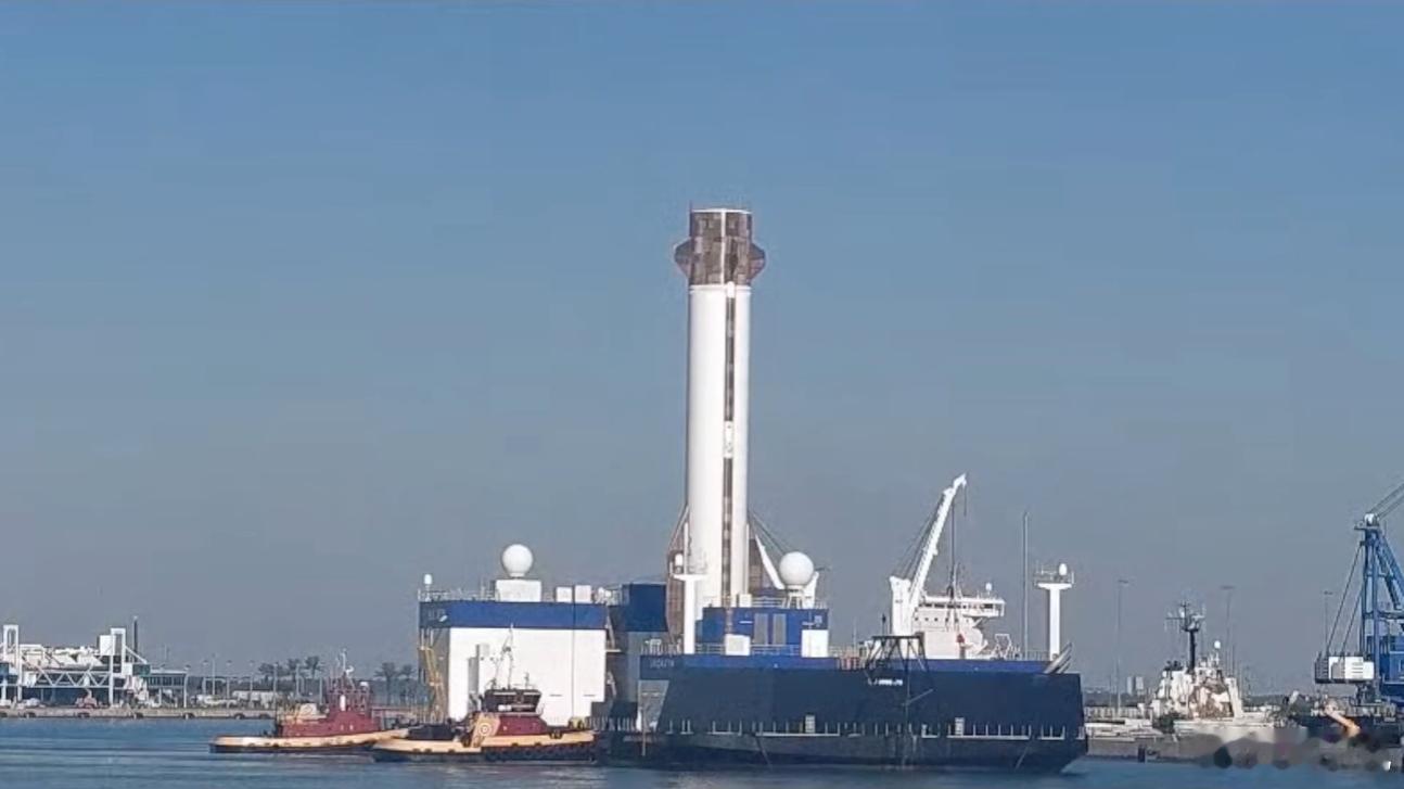 蓝色起源新格伦火箭助推器返港正在靠岸。