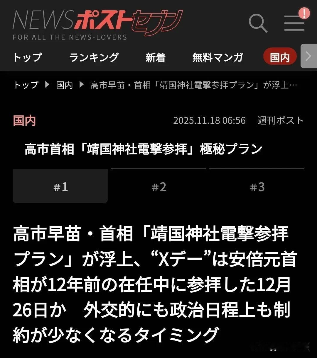 日本媒体消息称,首相高市早苗可能会在12月26日参拜靖国神社。这真成了女巫拜鬼!与恶魔交易的邪恶者的真实写照!