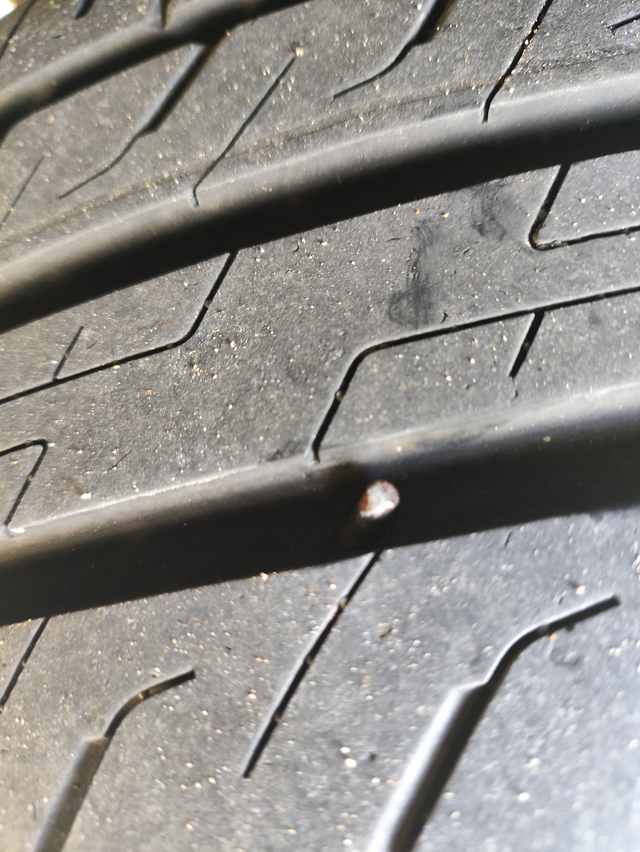 一大早发现胎压过低 早上正常送媳妇去上班,迷迷糊糊的,开出一公里才发现右后轮胎压只有60,反应迟钝又开了一公里,才感觉不保险啊,还得打打气,用车载充气泵充到230继续开,把她送到了。看了一眼轮胎,发现扎了个铁丝,开到修车店,砍了五块钱,45补了个小蘑菇钉,今年补了两次胎了,上次左后扎了个自攻丝,这次右后扎了4公分粗铁丝,再补我都想换轮胎了。