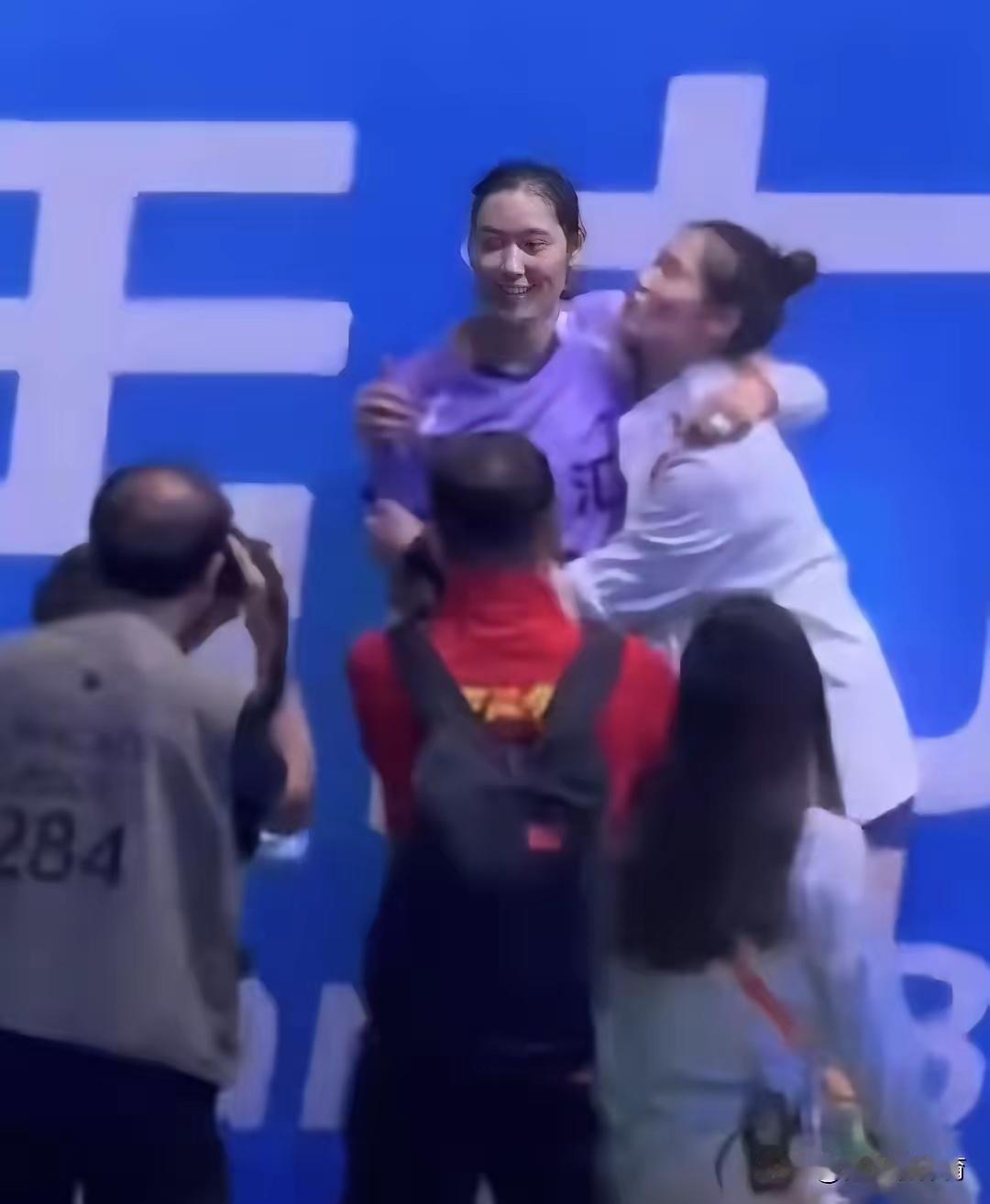 朱婷回国众人褒扬她,但是18日她举起拳头拽着昔日队友要暴揍她。 河南女排3:2北京女排结束后,王云蕗像个小女孩蹦蹦跳跳的跑向朱婷,之前小组赛她俩搂在一起合影过,这次又找朱婷合影。朱婷像个大姐姐笑着拉她到身边,特意帮她整理下衣领,王云蕗双手搂住朱婷的脖子撅着嘴巴要亲朱婷,朱婷也搂住密友的脖子看着她撒娇的模样开心的笑着,分别几年时间流逝和空间距离不减反而增加姐妹俩的感情。 拍完照后两个人不知道说些啥话?王云蕗貌似和朱婷开了一个玩笑,只见朱婷扬起拳头咬着牙拽着昔日密友的后背衣服要暴揍她。 我想问问朱婷这一拳揍下去用力了没有?因为朱婷举起拳头她和王云蕗整个过程都是笑着的。 本届全运会比赛过后的一些小花絮看着心暖暖的,比如王曼昱比赛结束小嘴巴‘’嘘‘’的一声,提醒不要吵着莎莎比赛。陈梦和朱雨玲赛后笑着搂一起。 运动员在比赛场上恨不得早点赢下对方,比赛场下自然而然流露出的好朋友、姊妹情越来越多,越来越让人感动暖心。