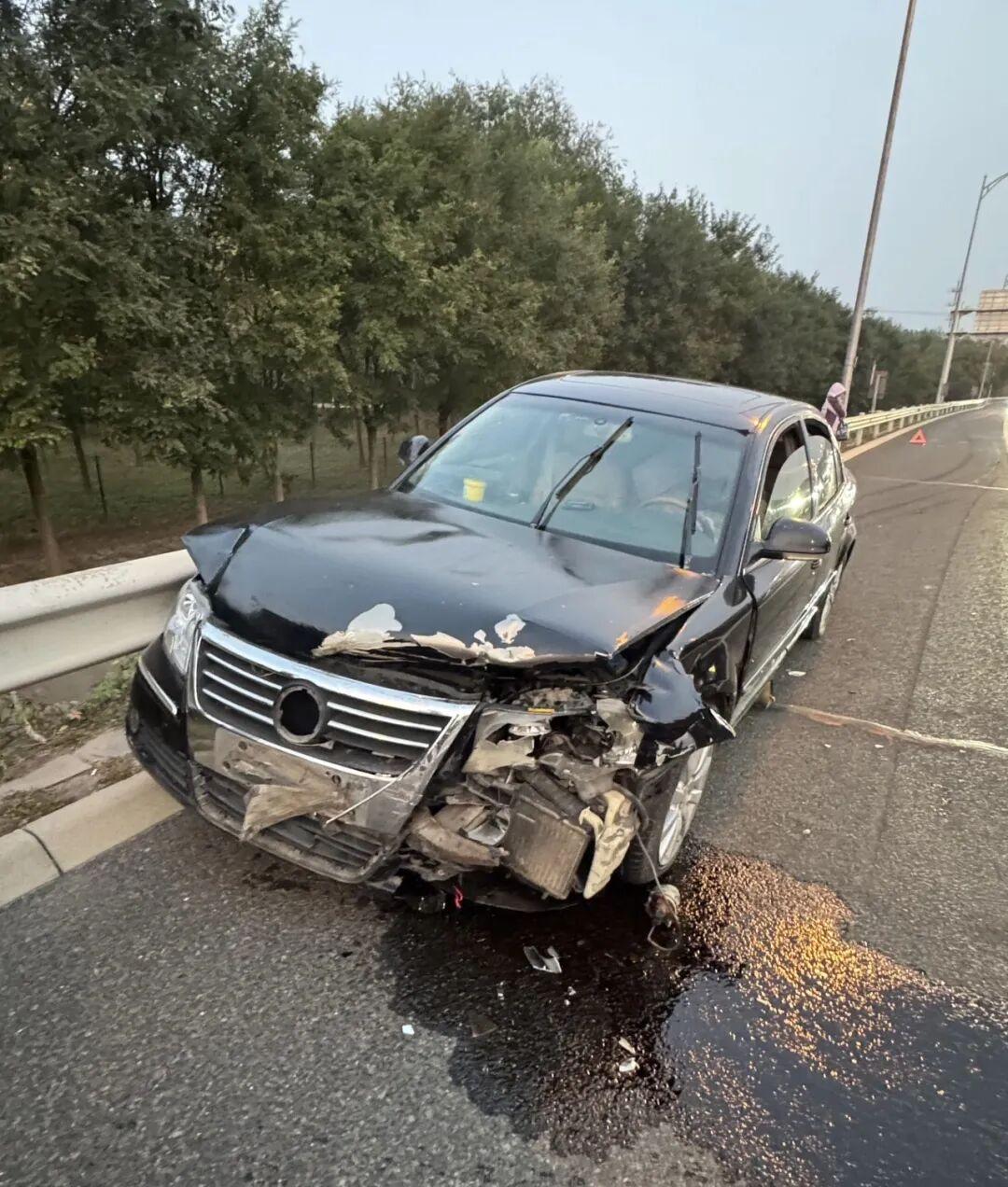 新车一血高速上被追尾早上开着宋大妈上高速回老家,在无锡路段被后车给追尾了,有点