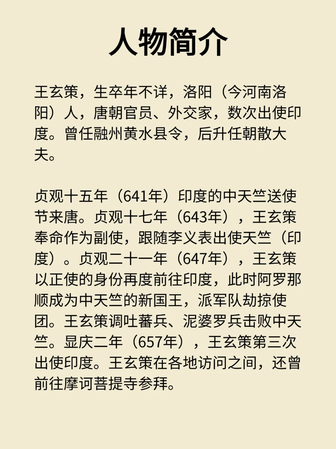 [种草R]王玄策,生卒年不详,洛阳(今河南洛阳)人,唐朝官员、外交家,数次出使印度。曾任融州黄水县令,后升任朝散大夫。