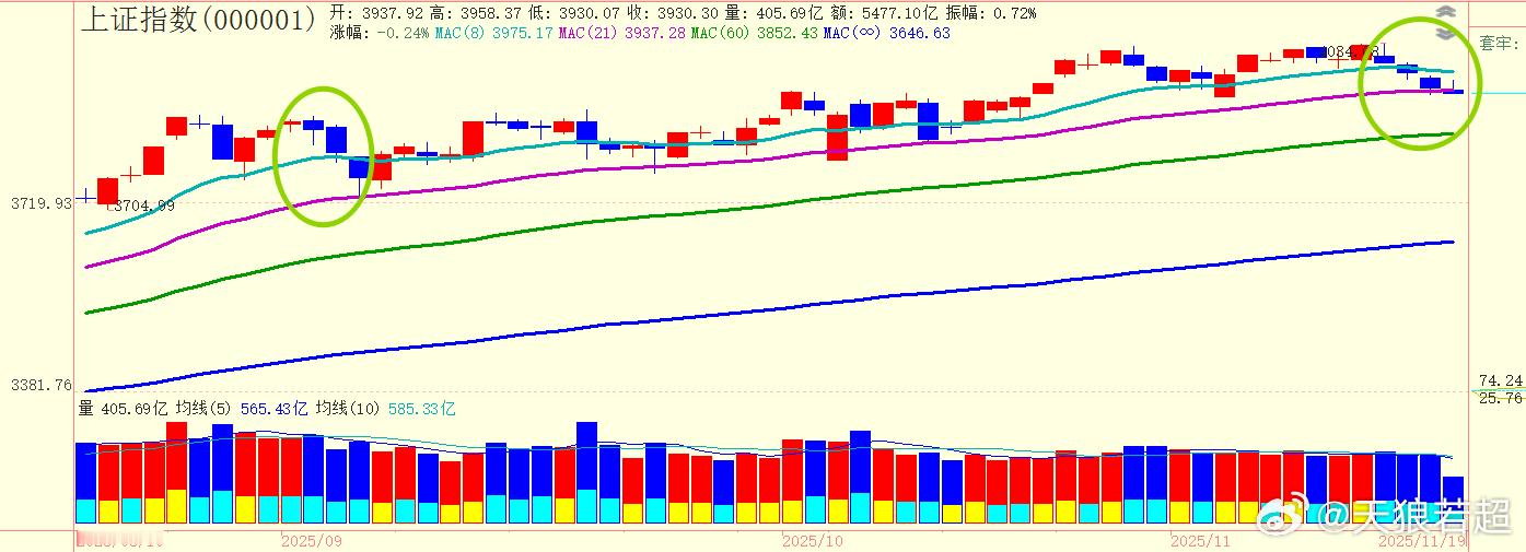 如果今天上证指数收阴线跌破21日成本均线,那就是4连阴了,那就是从8月底以来首次4连阴了(前面有过3连阴)