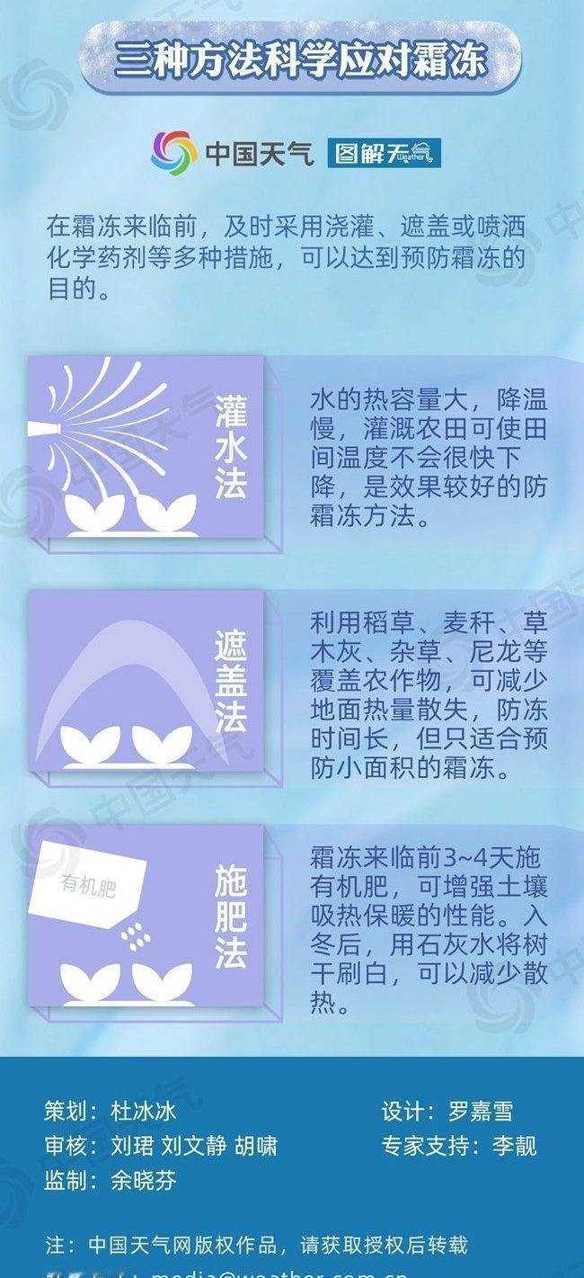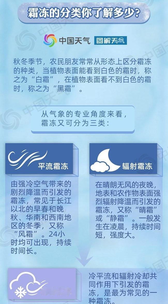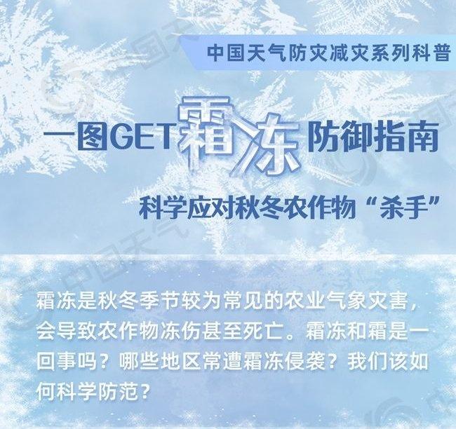 今天到21日夜晨,我省西北部地区部分城区有低温霜冻天气,局部有结冰,农民朋友要及时采取防寒措施应对。霜冻是秋冬季节较为常见的农业气象灾害,会导致农作物冻伤甚至死亡。哪些地区常遭霜冻侵袭?我们该如何科学防范?带你一图GET防御指南应对秋冬农作物“杀手”↓↓↓