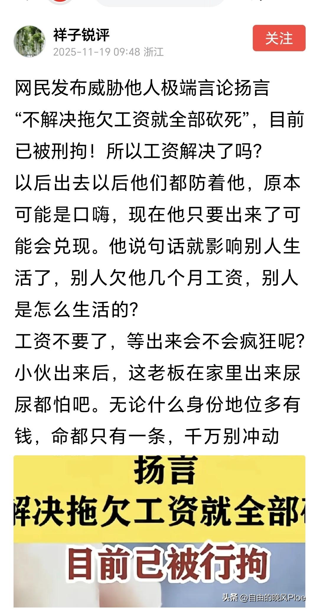 弱弱地问一句,那些扬言不给工资的老板有没有被刑拘?