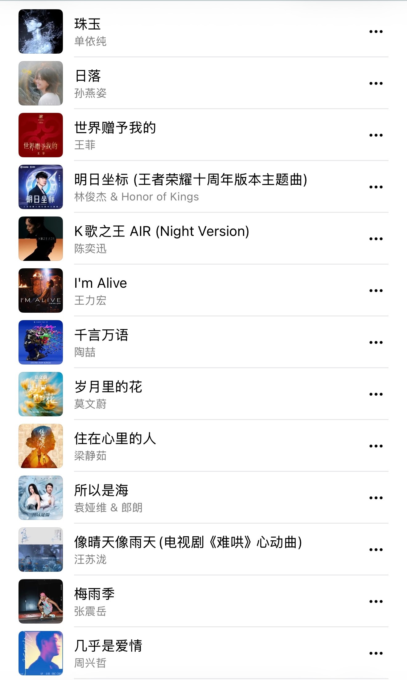 Apple Music公布2025年度50首最佳国语流行歌前十名:单依纯 《珠玉》孙燕姿 《日落》王菲《世界赠予我的》林俊杰 《明日坐标》陈奕迅《K歌之王 Air》王力宏 《I'm Alive》陶喆 《千言万语》莫文蔚 《岁月里的花》梁静茹 《住在心里的人》袁娅维&朗朗 《所以是海》