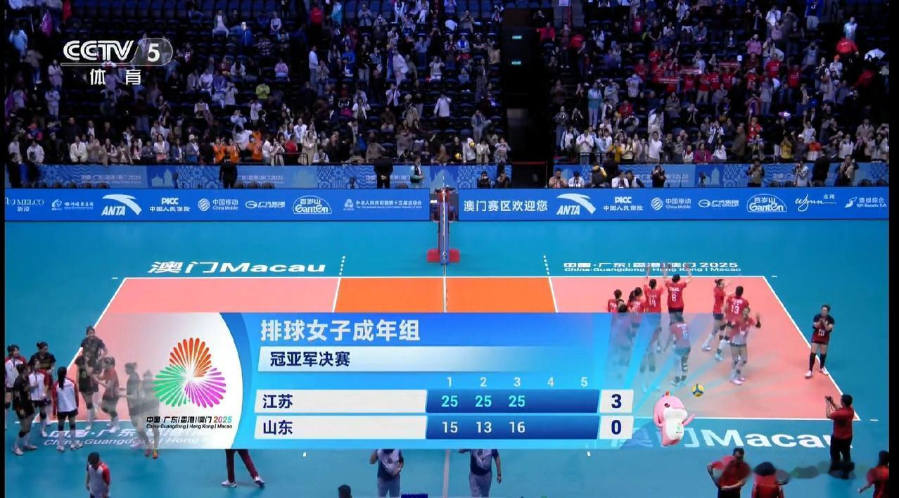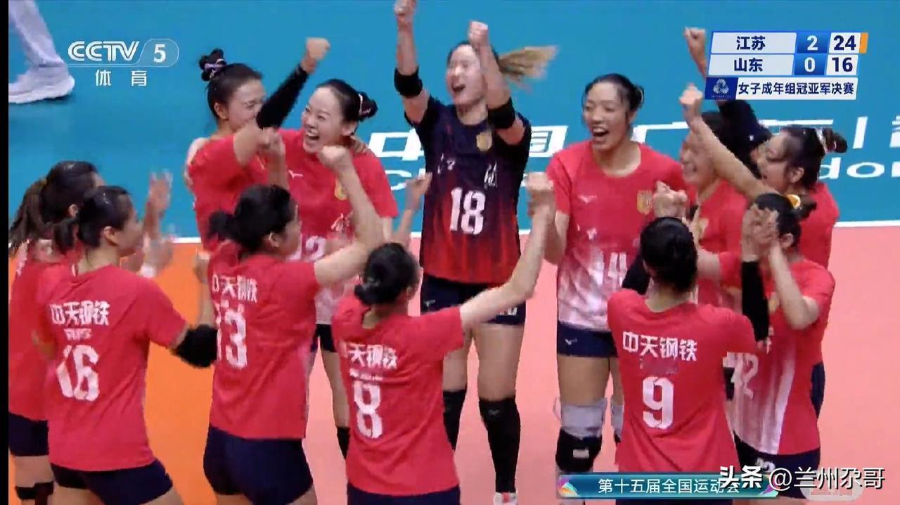 【捷报传来】江苏女排获得冠军 张常宁发球轮打懵山东女排,助力江苏女排3:0横扫山东女排,夺得全运会冠军。吴梦洁随心所欲扣球都得分,整个赛场成了吴梦洁的练兵场。山东女排一直被挨打,面对实力悬殊的江苏女排无计可施。 三局比分:25:150 25:13 25:16