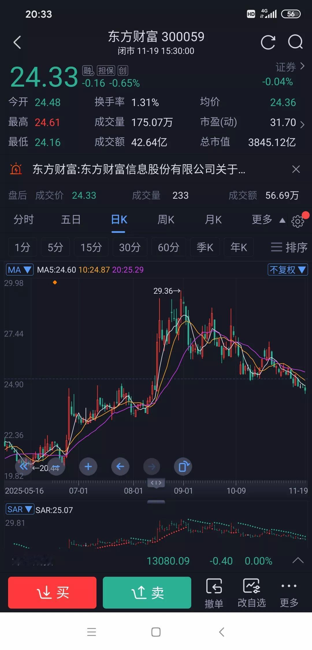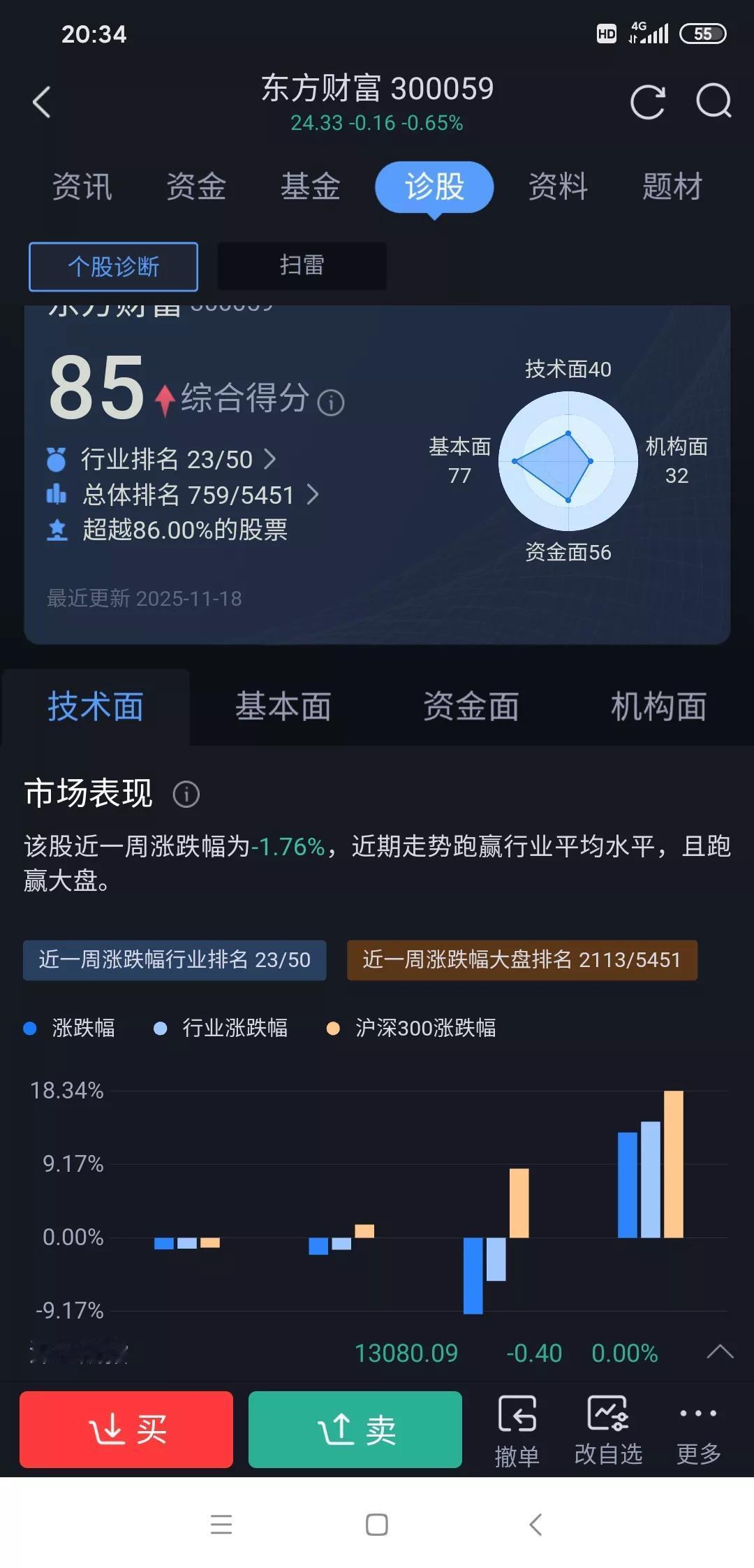 从 东方财富 中深刻体会到: 1.业绩很好,股价也不一定会涨。今年大盘涨幅20%,可东方财富涨幅才1%。要知道,它前三季度净利润约91亿,增长51%,接近2024年全年,收入也增长了59%,业绩相当亮眼。 2.往年券商都是牛市旗手,表现那是相当不错,涨幅远超其它板块,可今年确远跑输大盘。 3.大利好出来股票不一定会涨,也可能会大跌。 4.不要把鸡蛋放在一个篮子里,这样会很被动,大盘涨那么多,它确纹丝不动,你很容易崩溃。 5.股东人数太多的股票要谨慎选择。 所以在股市里,业绩好不一定股价就涨,要很多因素共同作用如:公司基本面;资金与情绪有推力;技术出现向好;和行业政策支撑。 但是像东方财富业绩那么好,难道今年真的就那么一直弱下去,不会涨起来了吗?