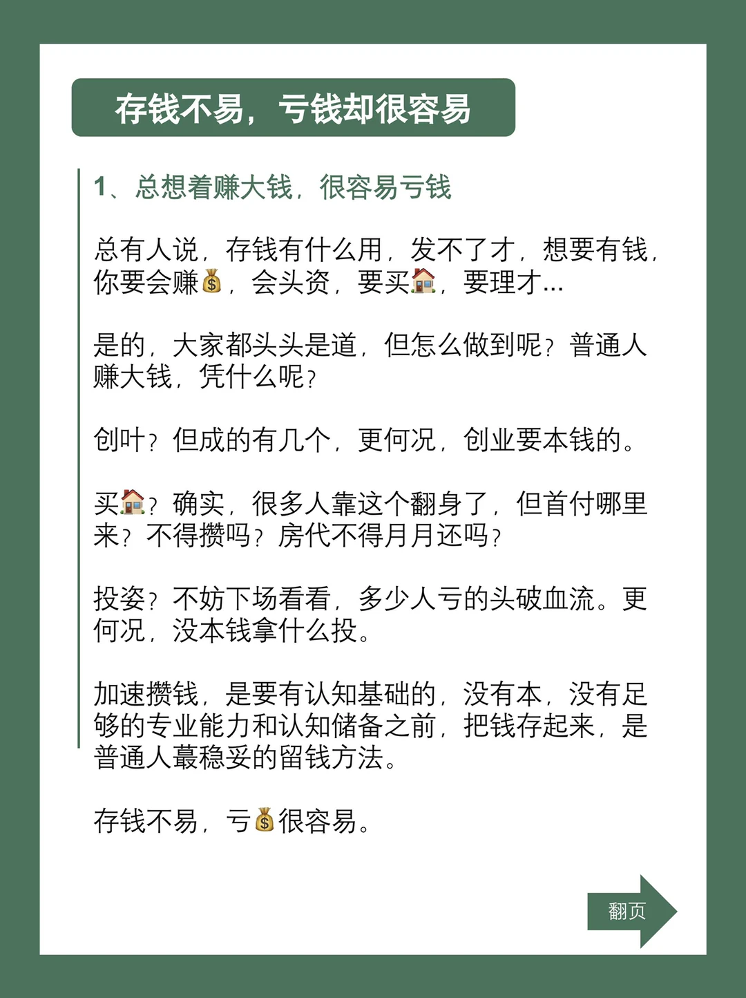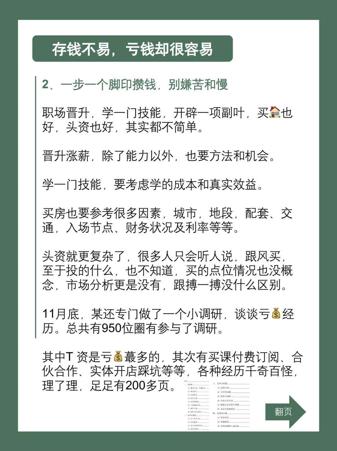 如果没有好的商业思维和相关专业的认知,不要轻易相信别人口中致福密码。因为存钱不容易,亏💰真的很容易。看看950位的亏💰经历,千奇百怪,你会懂得,简单存钱,提升认知,把钱攥在手里捂好钱包,有多么的重要。