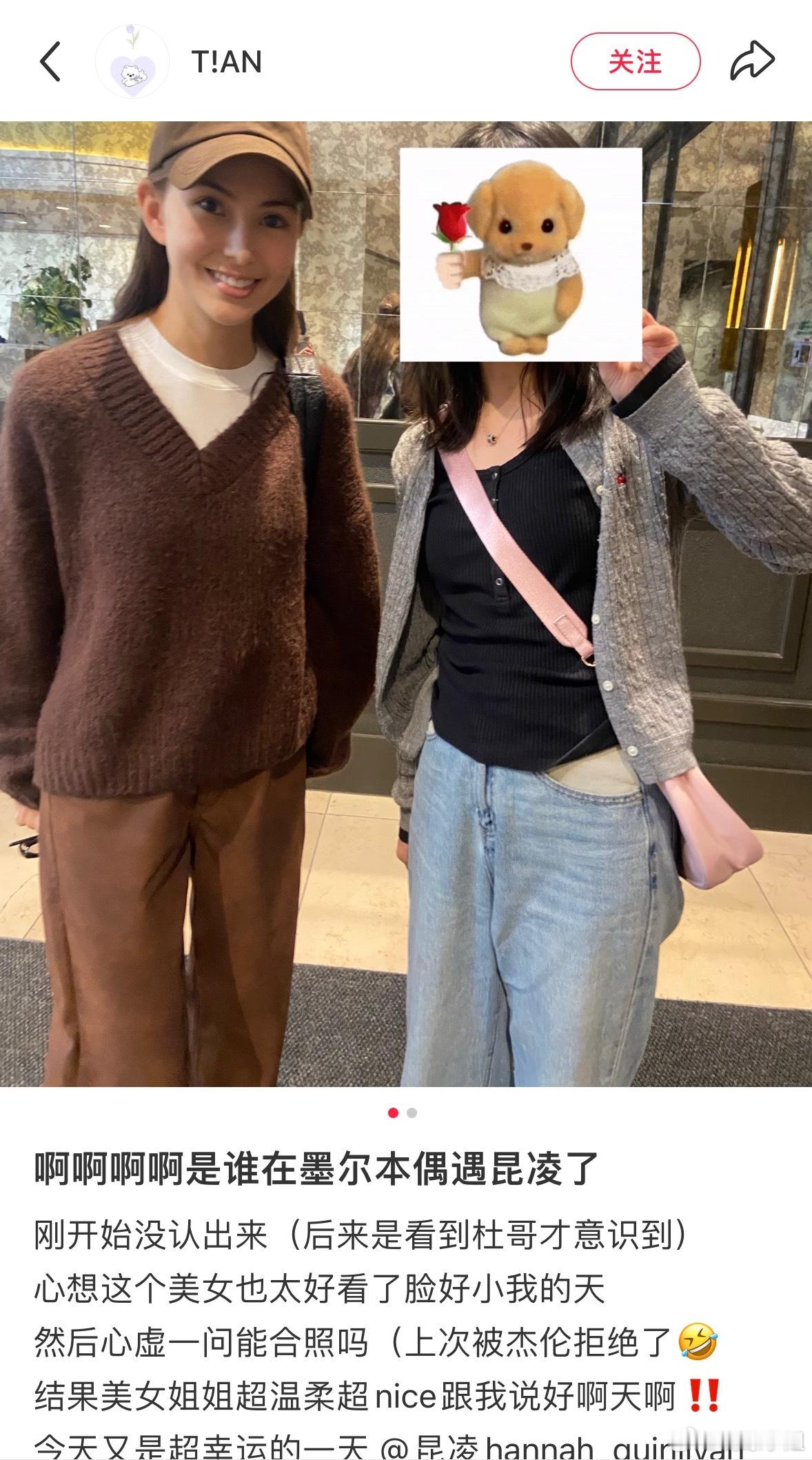 多位网友墨尔本偶遇昆凌啦~表示本人脸巨小好好看,网友鼓起勇气问合照也爽快答应,性格超温柔又亲切,什么时候轮到我偶遇啊~🥹🥹