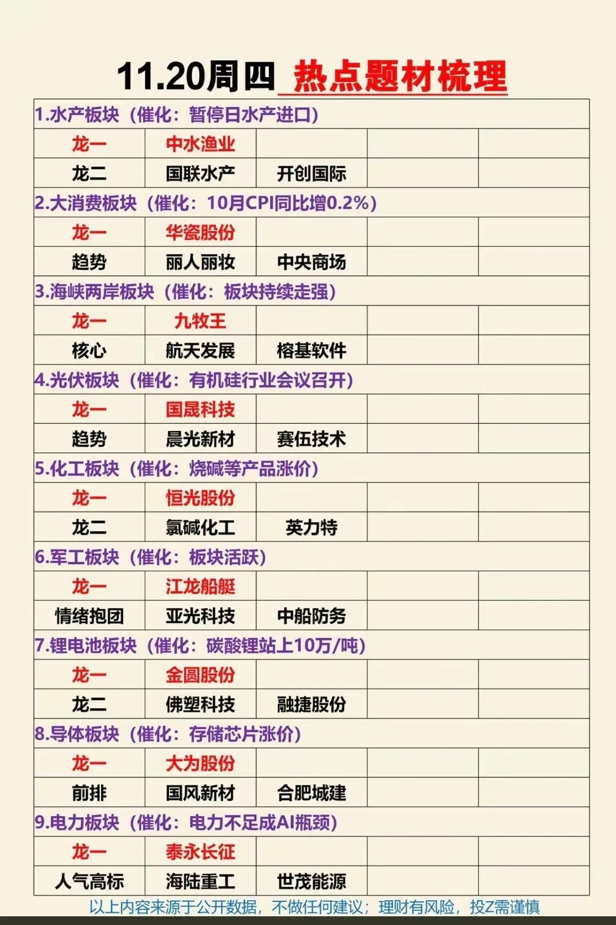11.20周四盘前 市场热点+投资逻辑!1.水产养殖2.大消费3.军工船舶4.化工原料5.锂电池相关6.福建两岸,海南自贸港、