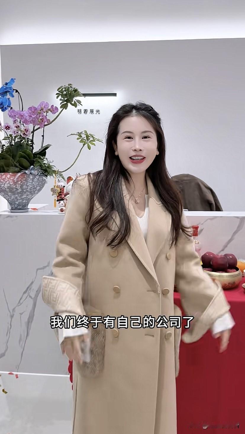 宋玉希欧洲旅游刚一结束就来操办自己的新公司了,去年十一月份来的杭州,到现在也整整一年了,她们不仅在杭州买了房子,也创办了自己的公司,租了一整层的大平层当办公地,忽然还是家底丰盈,短短一年可以在杭州立稳脚跟。 开业这天宋玉希穿着老公给她买的大衣,换掉了那件仿版大衣,开始开业剪彩仪式,公司员工看上去大约十几个人左右,从视频上看女生还是占了大多数,公司的办公区域看起来还没有置办齐全,估计这两天就能准备好。