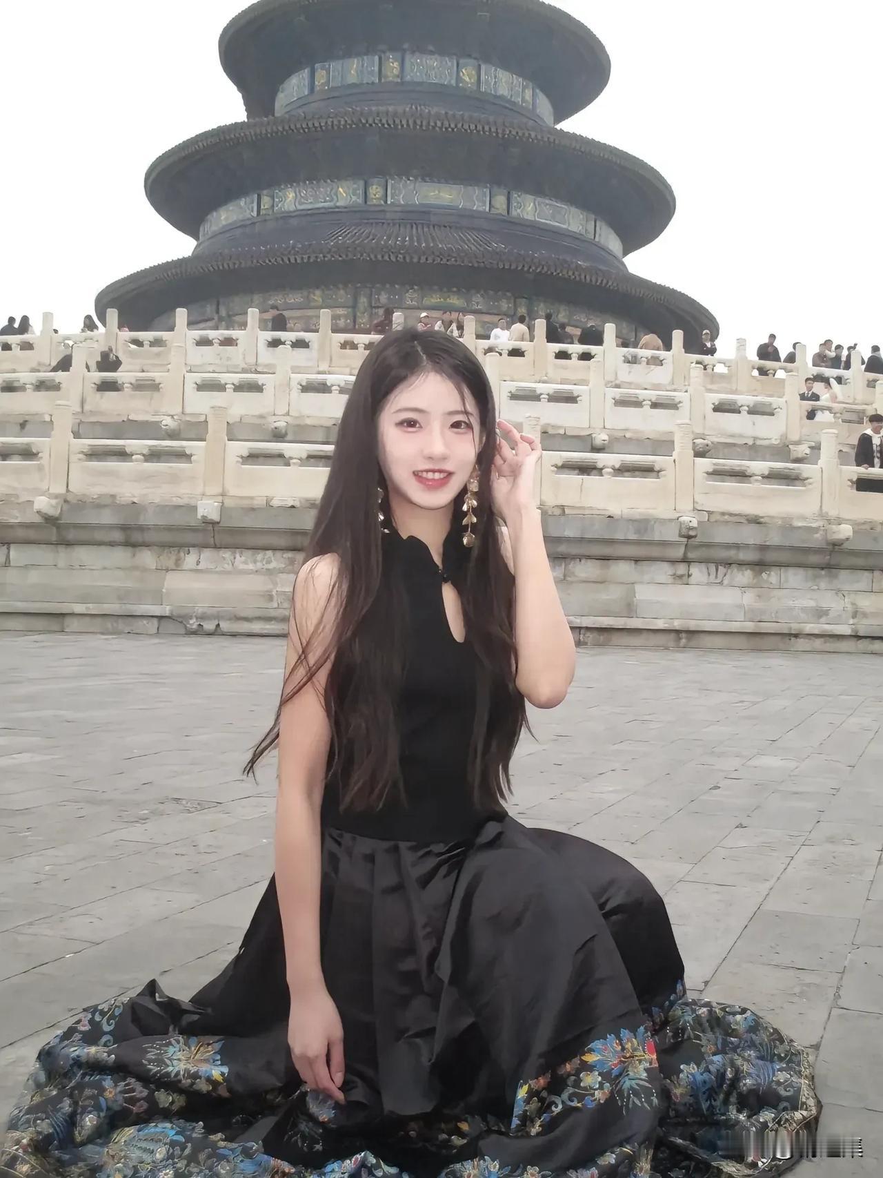 海天一色,少女漫步在海边,美不胜收!🌊👗💃