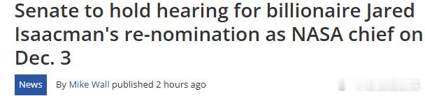 NASA局长人选:美参议院12月3日再审议!刚刚,据美国媒体报道,美国参议院定于
