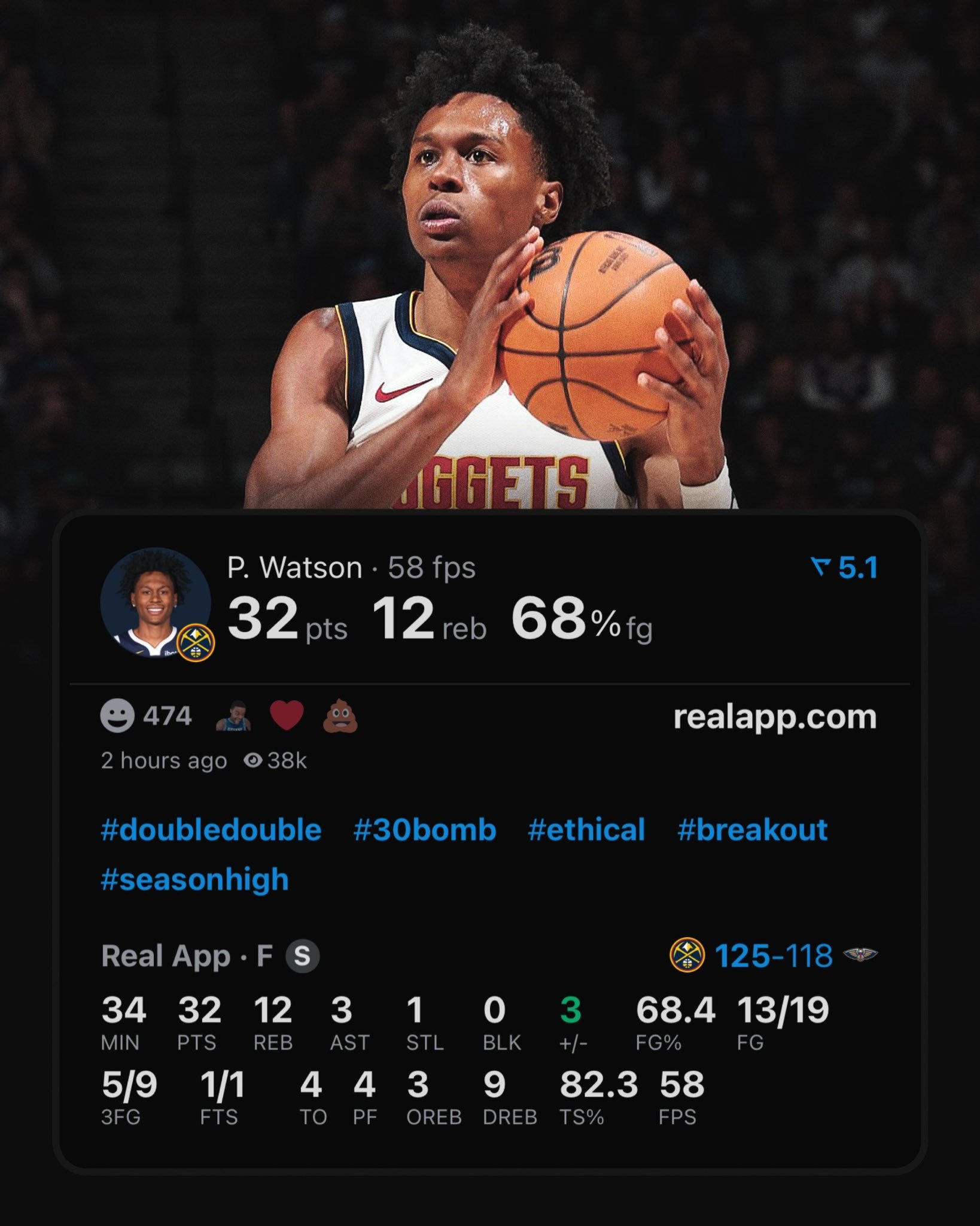 又一个砍下30+的新秀,鹈鹕德里克·奎因,面对自己的偶像约基奇,奎因30分9篮板4助攻4失误2断2帽,ts69.7%。约基奇拿到“准四双”,28分11篮板12助攻9失误,同时6犯离场,但掘金还是守住了胜利。这也是沃特森的生涯之夜,32分12篮板,命中5记三分,都是生涯新高。