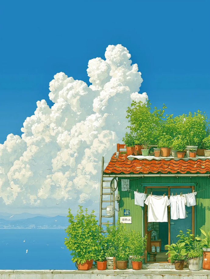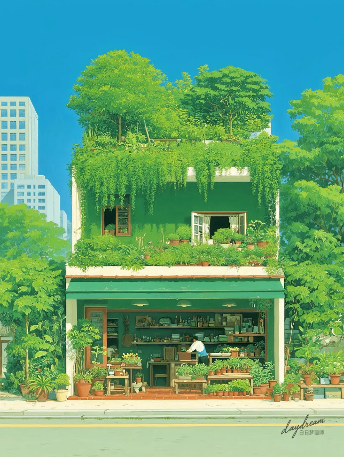 午后慵懒时光,绿植相伴,享受宁静的咖啡时光。