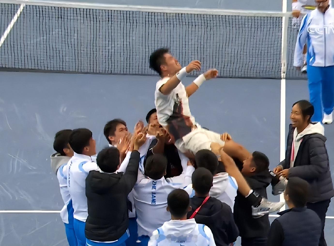 11月20日,全运会网球男单决赛上演巅峰对决,浙江选手吴易昺以6-0、1-6、6-4战胜商竣程,斩获个人及浙江网球史上首枚全运单打金牌。历经八年三战全运,吴易昺赛后跪地掩面而泣,用坚韧打破过往遗憾,圆梦赛场。