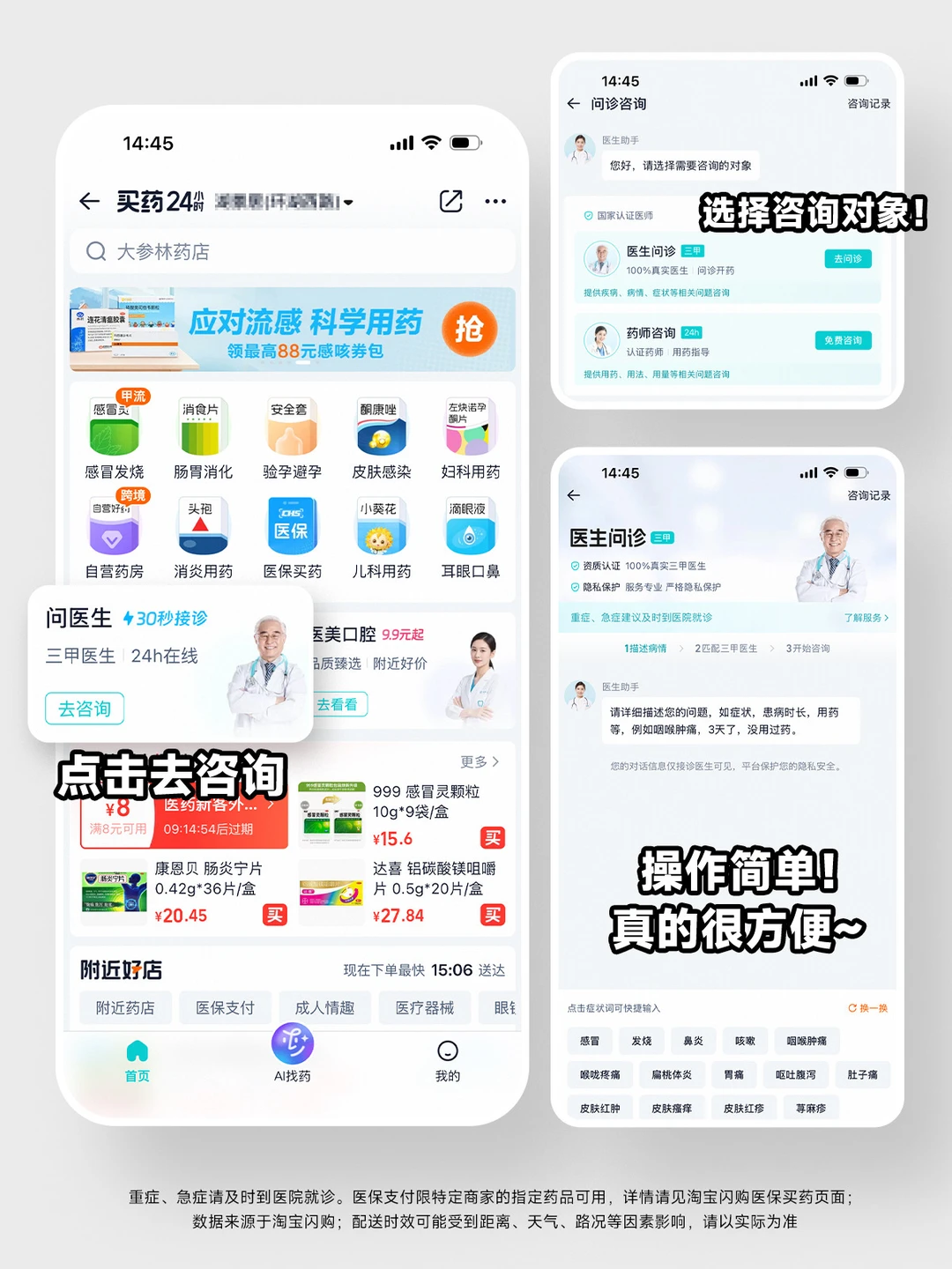 ✅如果家里一时没有备用药,可以试试☞☞☞上淘宝闪购搜【看病买药】进入买药频道页下单,不用出门最快19分钟就能收到需要的💊。还支持AI找药和在线问诊,只要输入你的情况跟需求,就能得到初步建议,对状态不佳、出不了门的宝子来说,真的太方便了。