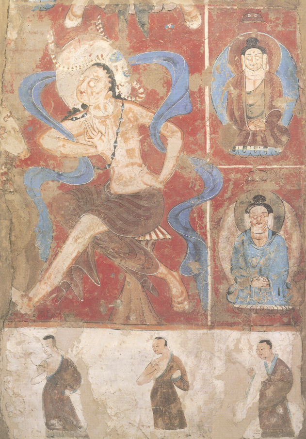 俄罗斯冬宫博物馆藏敦煌出土唐代彩绘伎乐天与千佛