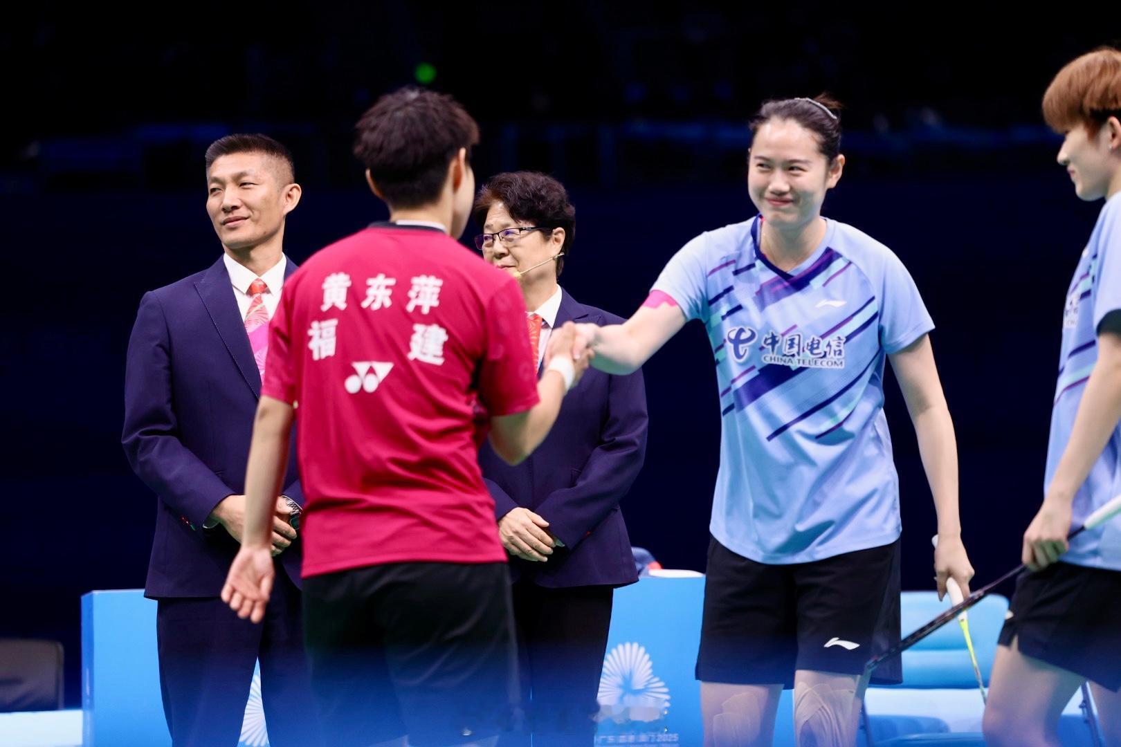 十五运会羽毛球女双决赛:黄东萍/谭宁 25-23、 21-16 郑雨/张殊贤 金