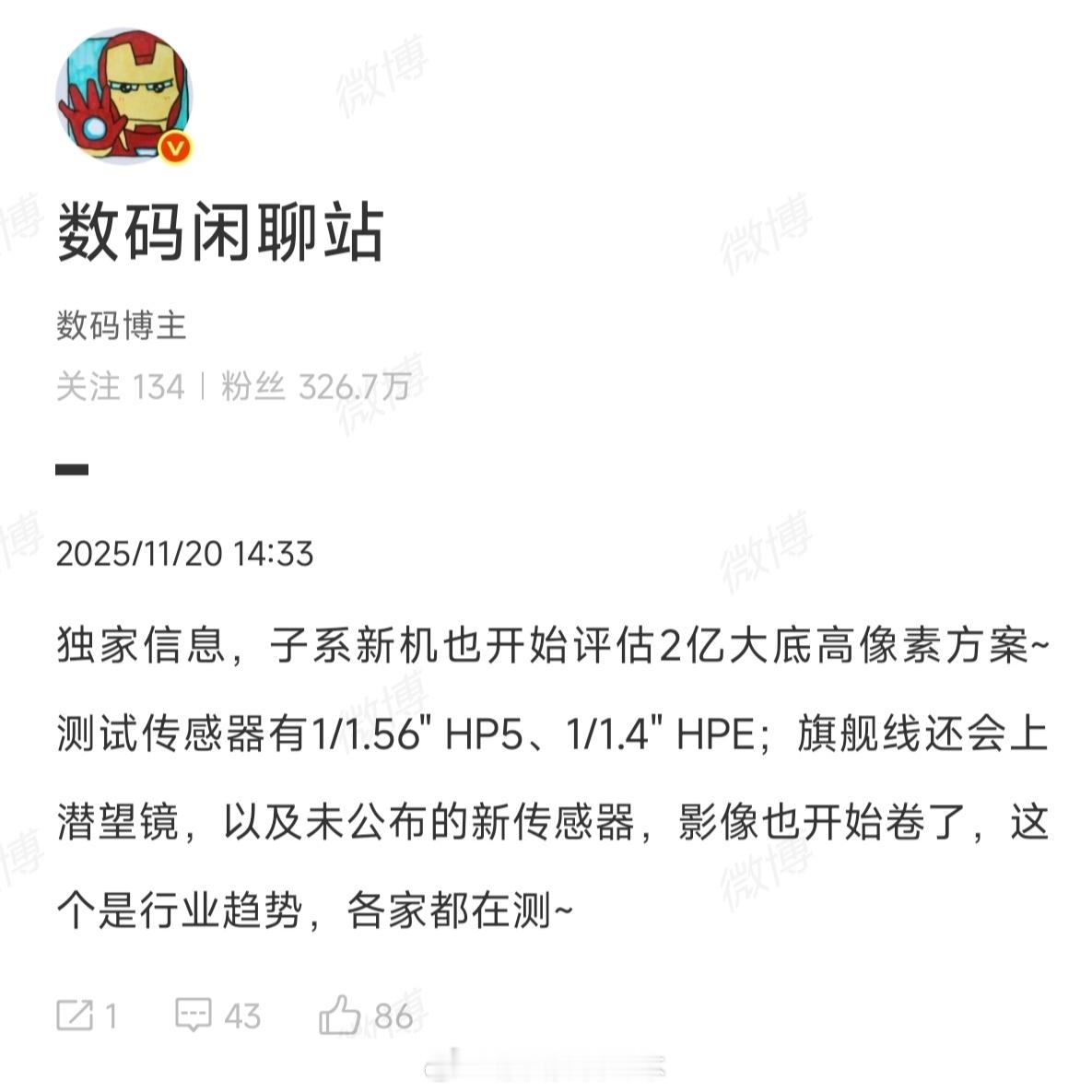这是哪家子系新机在评估2亿大底高像素方案啊?