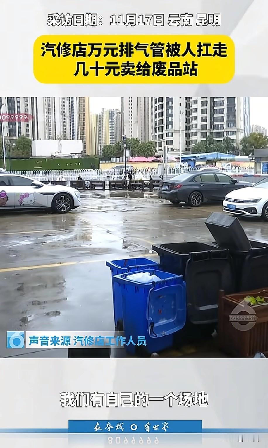地点云南,时间是本月16号 一个环卫大妈把汽修店的排气管给拿走了,卖到废品收购站换了10多块钱 这可把汽修店的老板给整不会了 他说我们有自己的场地,不是放在马路边上,而是这位大妈跑到院子里拿走的,而且这个排气管是宝马车上的,如果去4S店买的话得1万多 首先遇到这种顺手牵羊的事真是太窝心了,在环卫工人看来大部分拆下来的东西,以为就是个破烂,想到天边也不会想到,一个排气管会值这么多钱 难道只能自认倒霉,真没有其他解决的办法了吗,一次次的忍让,换来的是变本加厉,真不能坐视不管,虽然说他们也很可怜