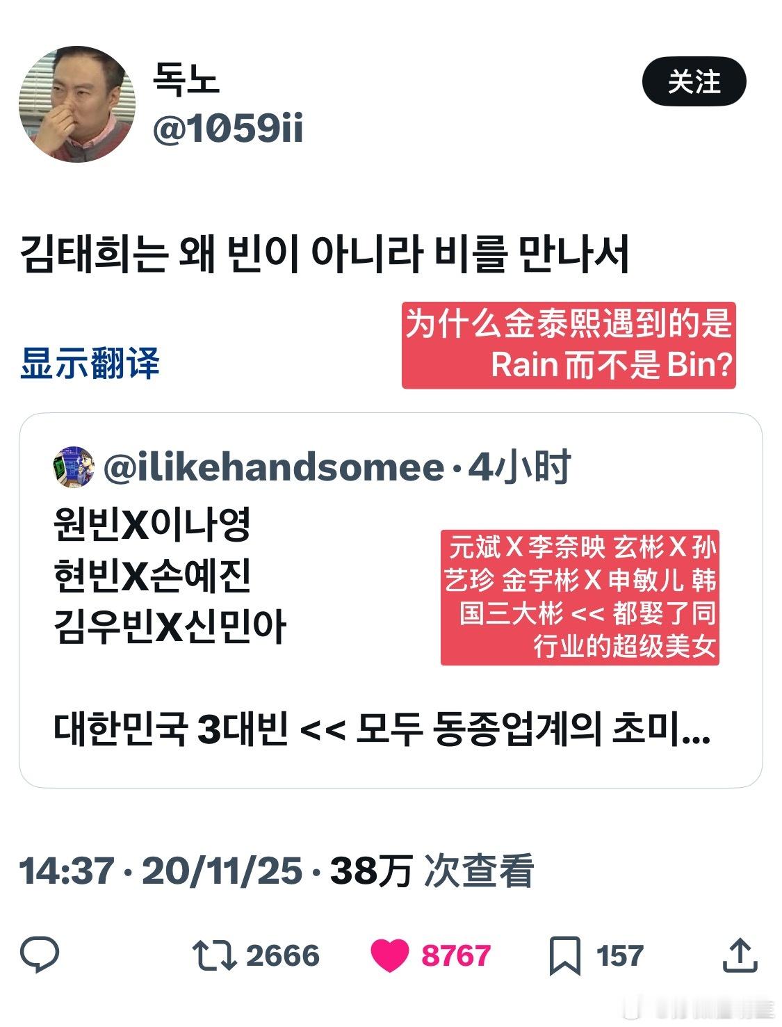 【热推8k赞】为什么金泰熙遇到的是Rain而不是Bin?哈哈哈哈哈哈哈哈哈哈哈哈哈哈受不了了我hgr这个玩梗
