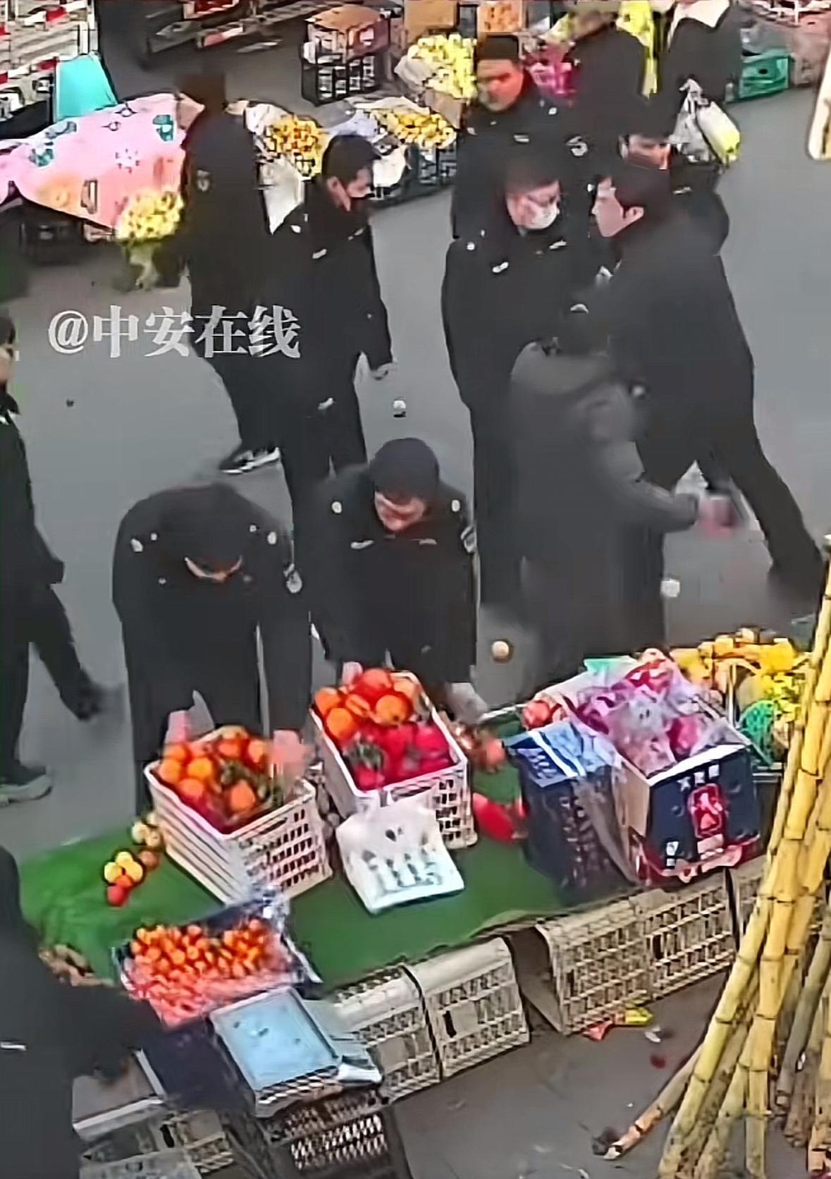 11月18日,辽宁。商贩违占道摆摊,一条马路占了一半,城管多次要求整改,结果商贩