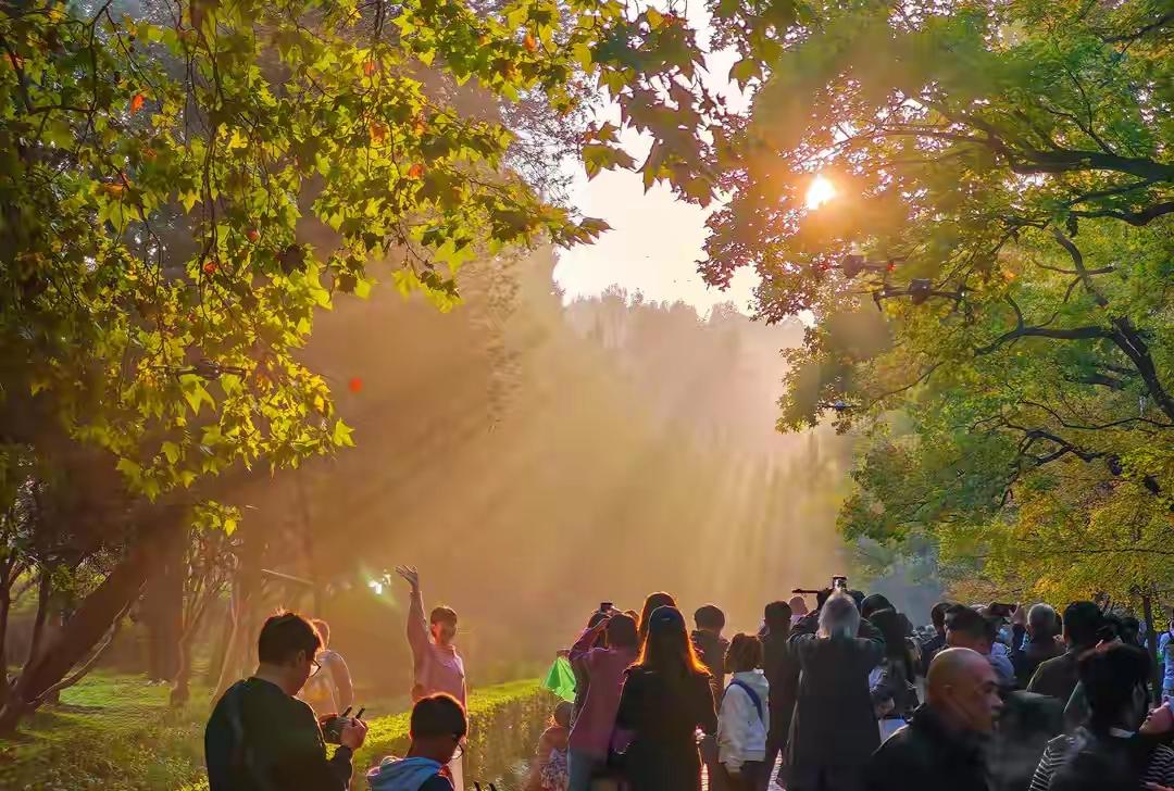 早起的鸟儿有食吃,早起去明孝陵,不但省了银子,也许还能拍到令人感动的丁达尔。 大自然是眷顾人类的,总是想着办法告诉你光的存在,明孝陵石象路就像天选的演绎场,清晨,江南特有的雾气氤氲开来,初升的太阳照射在薄薄的雾气上,透过树叶的缝隙,一缕缕洒到地面,形成了特有的光束,让人感觉置身于一个梦幻世界中。 石象路仿佛是丁达尔光来到这里的神秘通道,静悄悄地展现大自然温柔的馈赠。 当然这种光可遇而不可求,但是陵园路,明孝陵石象路出现的次数还是挺多的,看网上流出的美图,那都是摄影爱好者蹲守到的美景。
