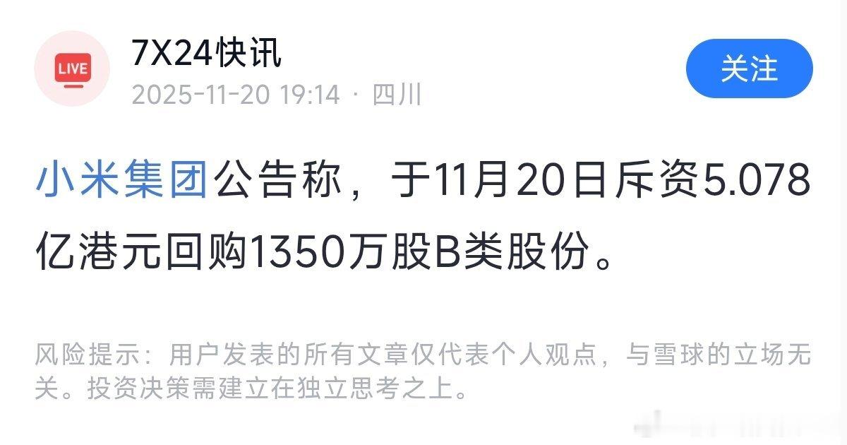 今日回购1350万股,5亿港币Alain总明天咱多按几个零