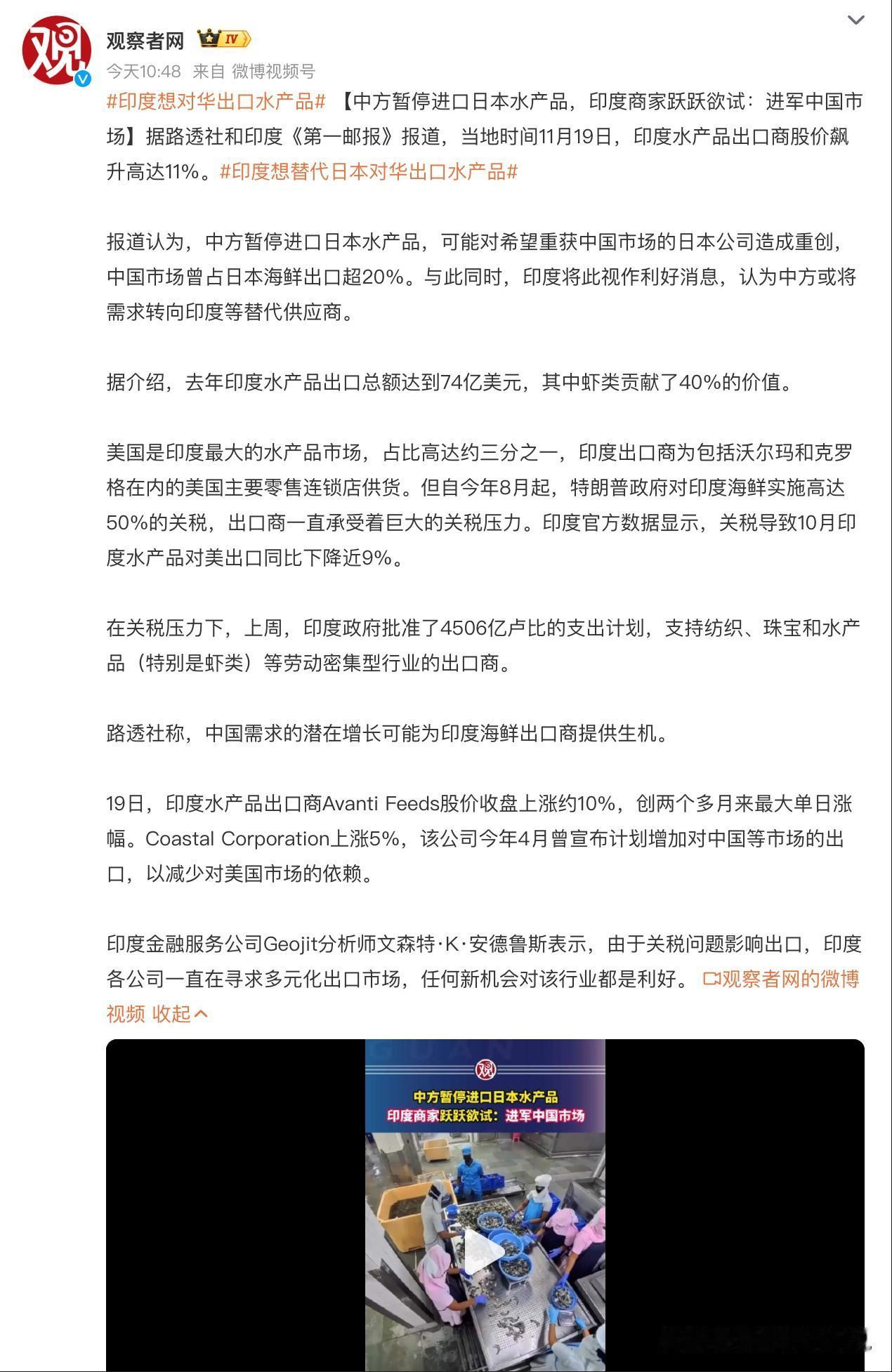 我国停止进口日本水产品,而印度已经提前开始了狂欢!事情是这样的,就在我国宣布停止进口日本水产品后,印度觉得机会来了,估摸着我国会找替代进口国来填补市场空白。他们觉得极有可能印度就是那个理想的水产品产地,于是市场情绪开始高涨,就连相关的水产品股价都开始暴涨。那么问题来了,我们会不会选择连组装的iPhone都能查出大肠杆菌的印度作为新的水产品进口国呢?