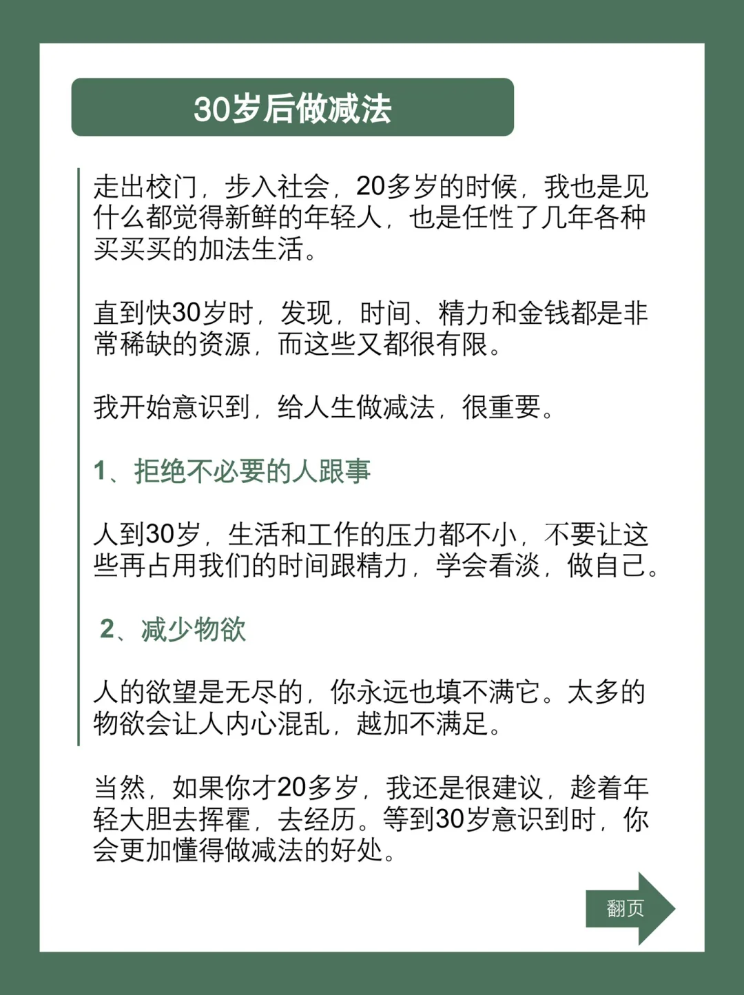 👧20多岁的时候,我也是看什么都觉得很新鲜年轻人,也经历过图新鲜买买买的加法生活。直到快三十岁时发现,时间、精力和金钱都是非常稀缺的资源,我开始意识到,需要给人生做减法,把稀缺的资源用到重要的人和重要的事上。