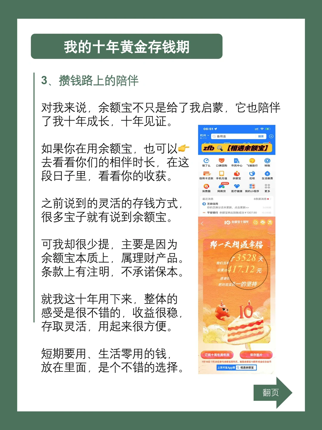 对我来说,这样开篇的启蒙,它不只是启蒙,也陪伴了我3528天的成长,十年见证。如果你在用余额宝,也可以去看看你们的相伴时长,上支搜相遇余额宝,看看在这段日子里,你的收获。