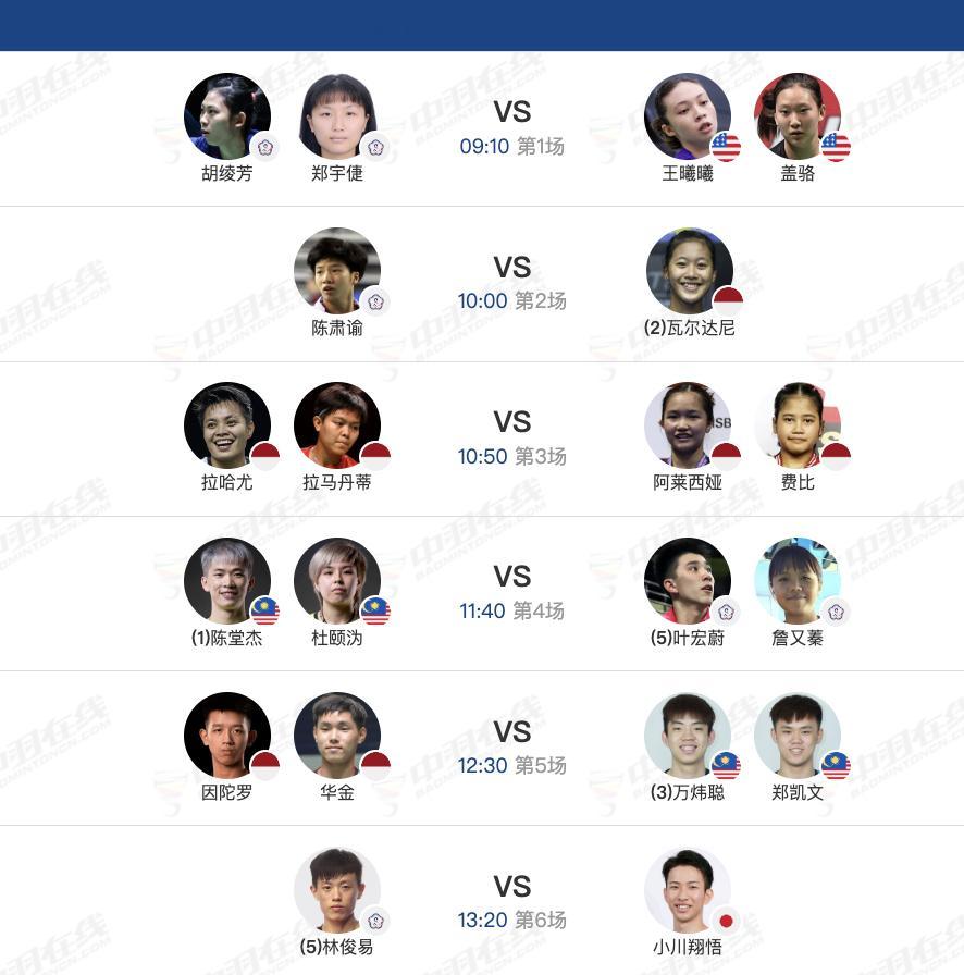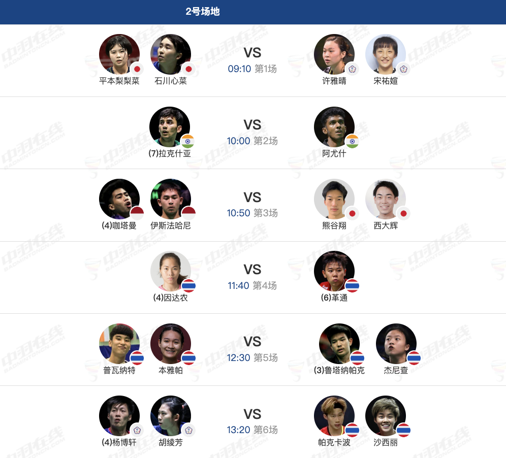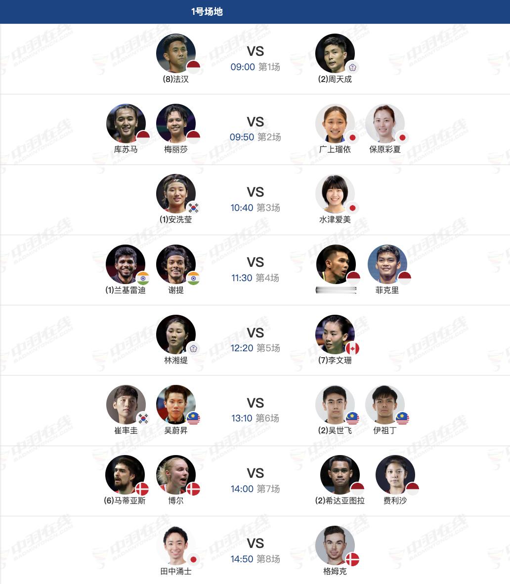 11月21日各单项8进4赛程,早上9点开赛: