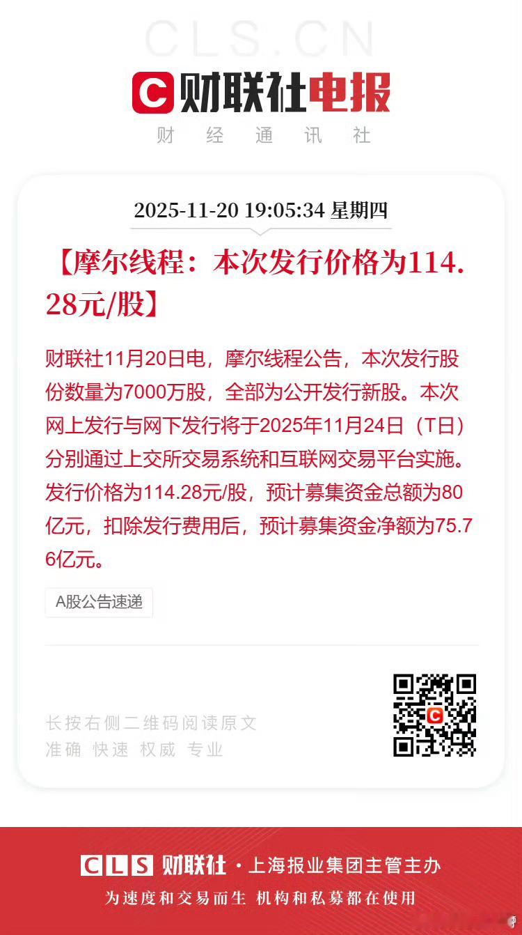 本次发行价114.28元/股,发行7000万股,募资80亿。算了一下妥妥的大肉签,中一签保守10个,个人感觉中签率有点低,谁的命和运都很好呢