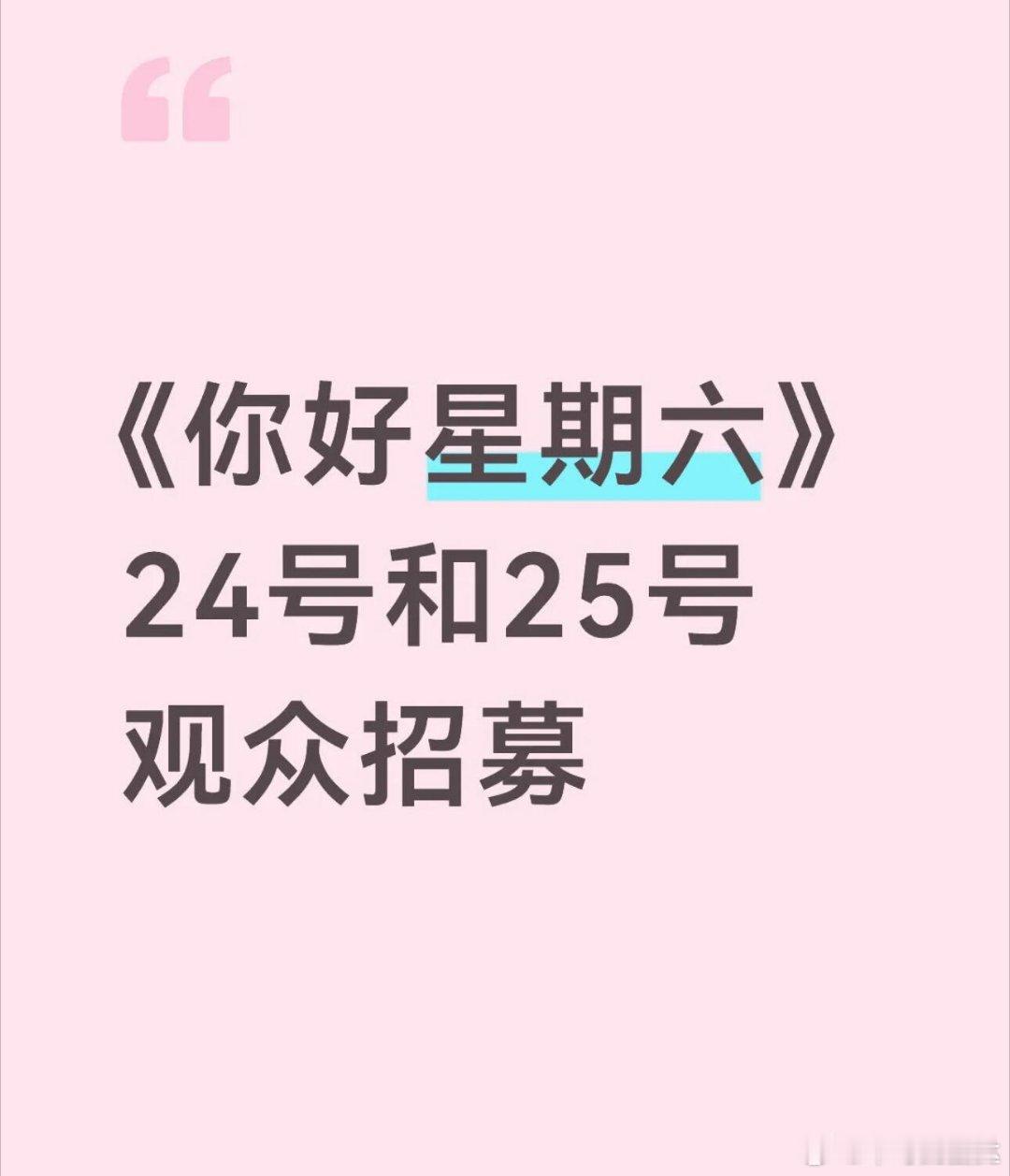 11.24-11.25号《你好星期六》《你好星期六》11月24、25号录制常驻:何炅、丁程鑫、杨迪、吴泽林等24日飞行嘉宾:赵今麦、宋威龙等25日飞行嘉宾:谭松韵、侯明昊、汪铎等还有飞行嘉宾加盟你好星期六 ‖