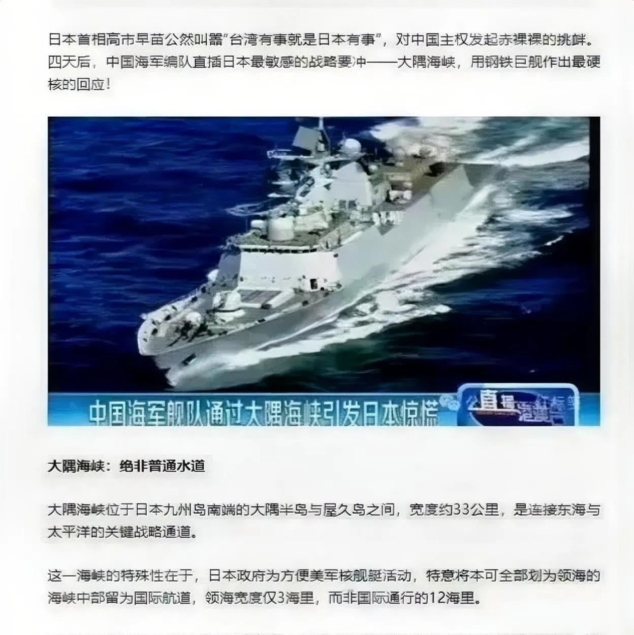 凌晨两点,当大家还在睡觉的时候,055型导弹驱逐舰“鞍山号”带队又穿越了大隅海峡,日方除了加急通报,没有任何办法。 055大驱跑到日方敏感地带溜达,选择的这个时间点很讲究,不选风和日丽的白天,就在夜黑风高的凌晨。 情绪价值很到位:惹我生气,心情不好,你也别想睡好觉!