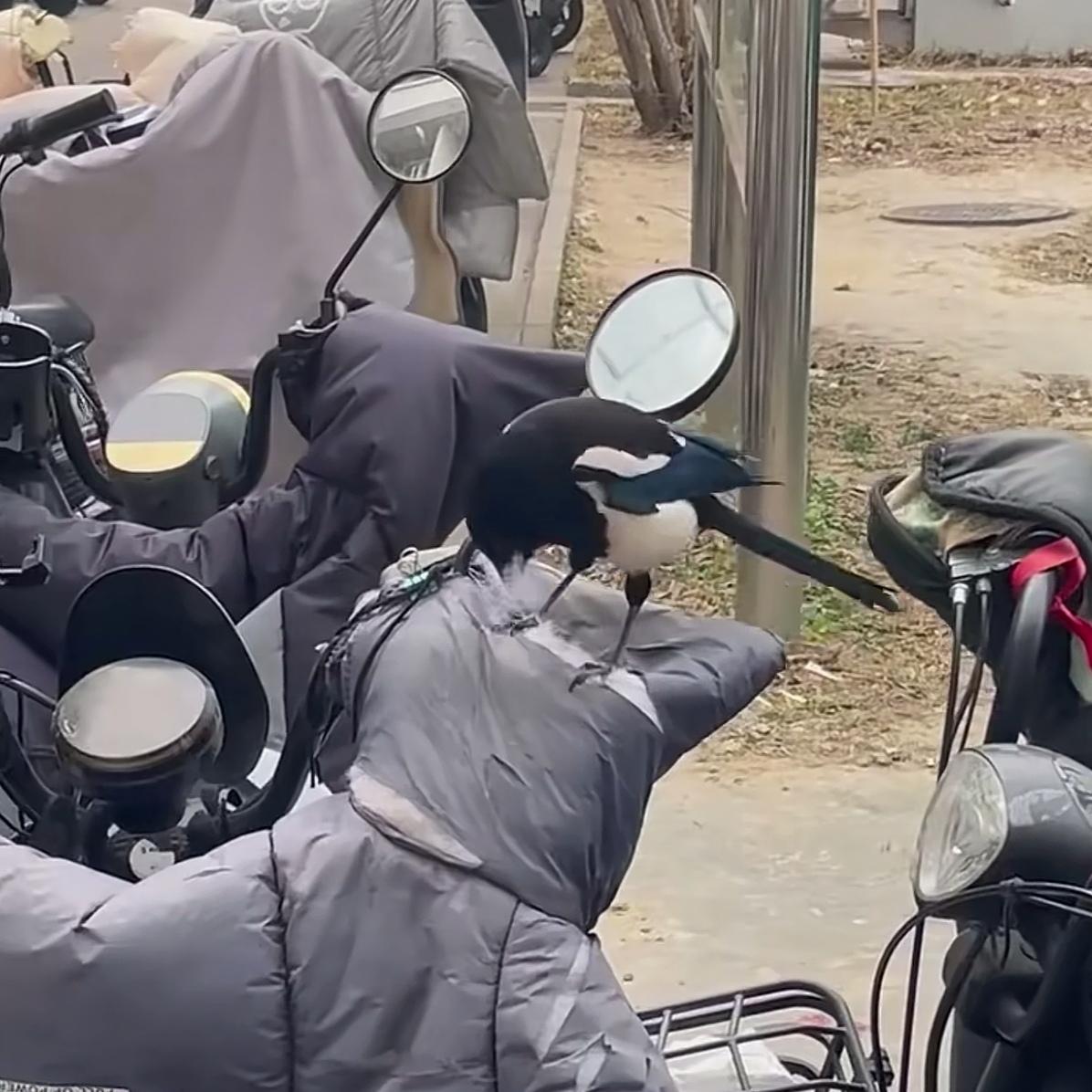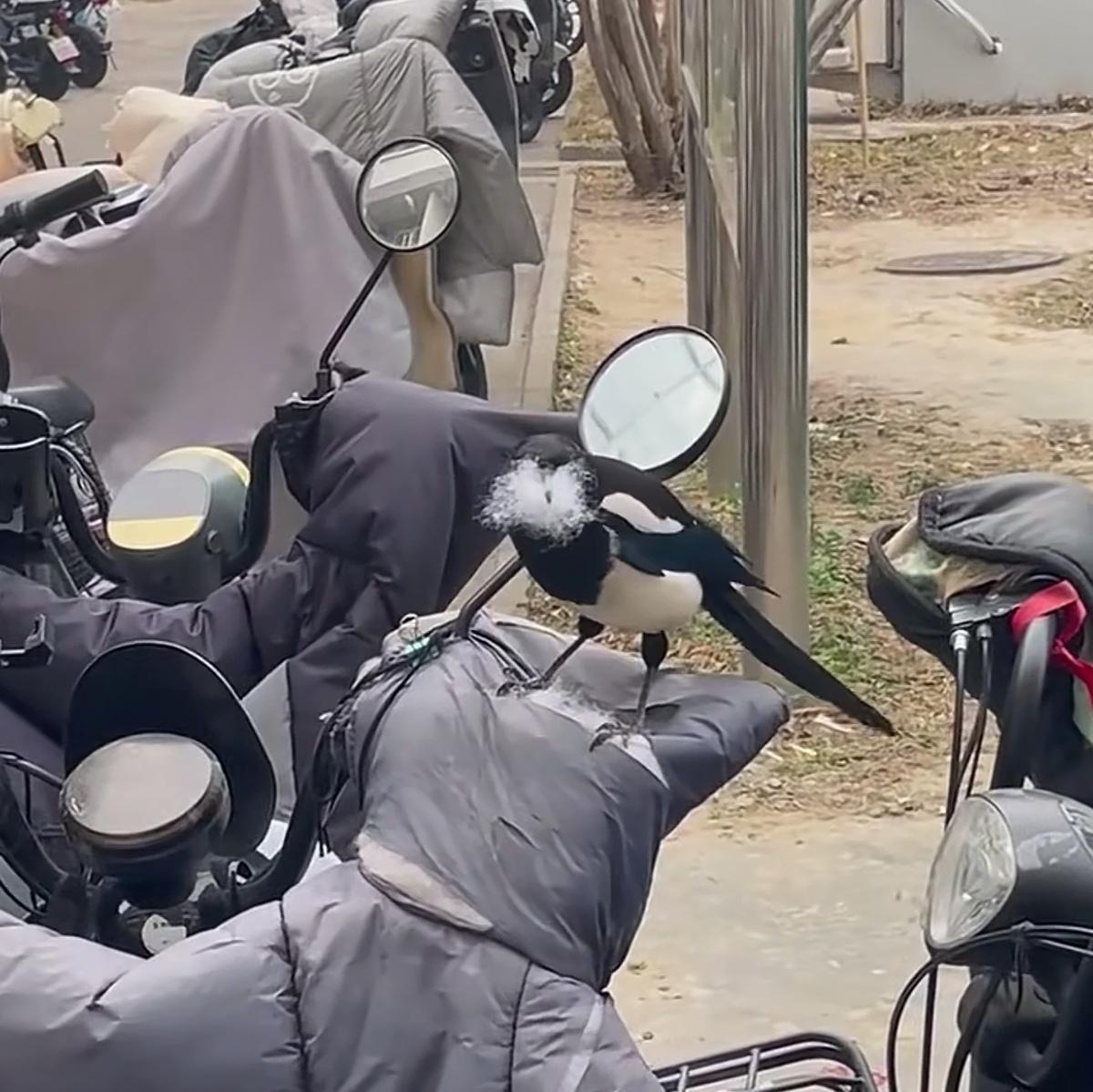 谜团解开了,我说哪个小兔崽子把我新买的挡风被给扣个窟窿呢[捂脸][捂脸][捂脸] 农村喜鹊喜欢薅牛马的毛 城市喜鹊也喜欢薅牛马的毛