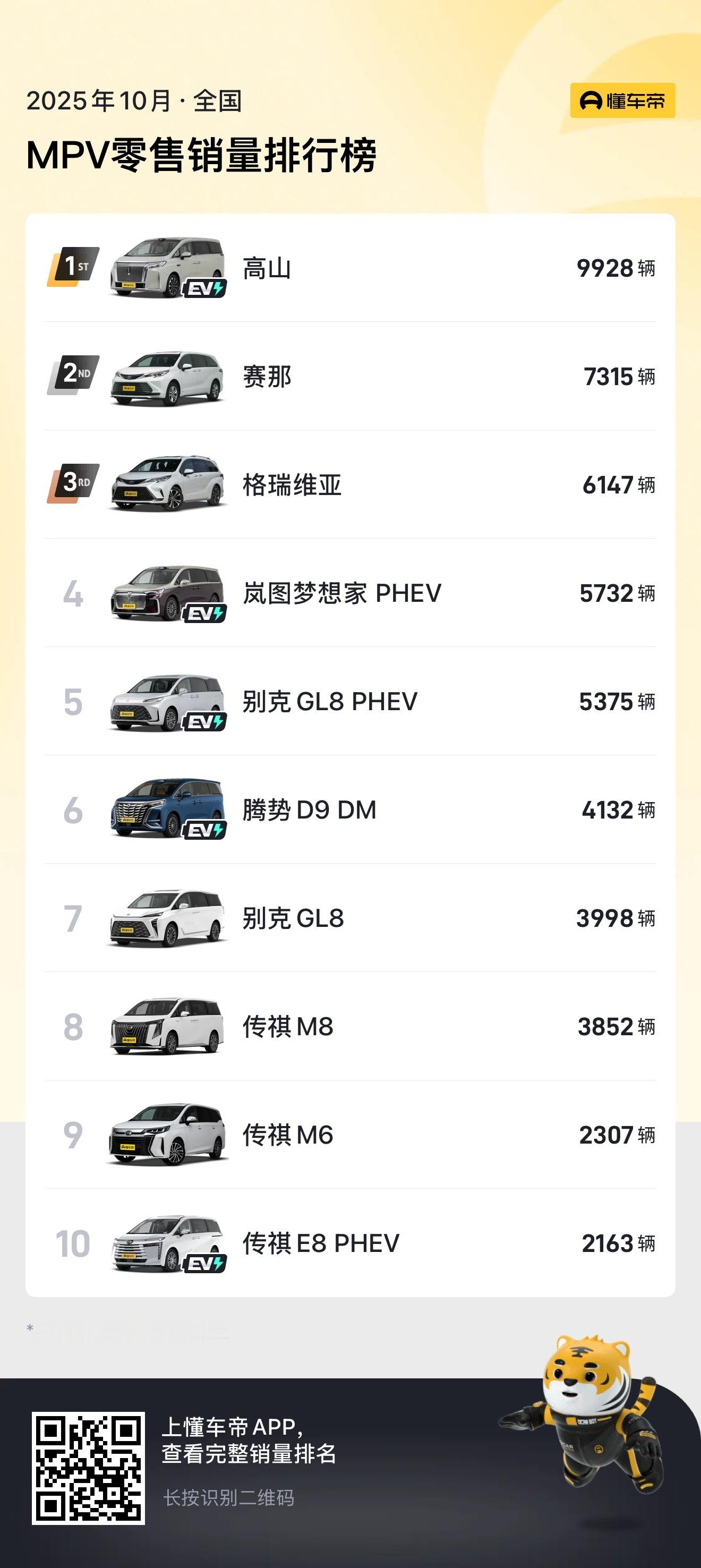 跟大家介绍一下,10月不加定语的MPV销冠,魏牌高山。师兄买完之后大家真是一点不客气,咔咔跟着买啊