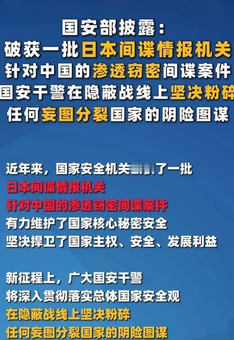 属实没见过这么双标的操作!日本又来要求释放“日方公民”,可这哪是什么普通公民,分明是证据确凿的间谍! 潜伏34年偷拍军工机密,偷偷标注85个军事管理区坐标;制药公司高管潜伏20年,暗地传输敏感数据,这些行为放在哪个国家都是重罪。 日方却装糊涂,把间谍包装成“普通从业者”,动辄拿“影响双边关系”施压,说白了就是想把危害国家安全的勾当,粉饰成简单外交纠纷。 国家安全从来不是谈判筹码,依法办案没有任何讨价还价的余地。日方越是倒打一耙,越让人看清其长期渗透窃密的真实图谋。 我们尊重合法往来,但绝不容忍任何危害国家利益的行为。你觉得面对这种隐蔽的渗透,普通人该如何提高警惕?