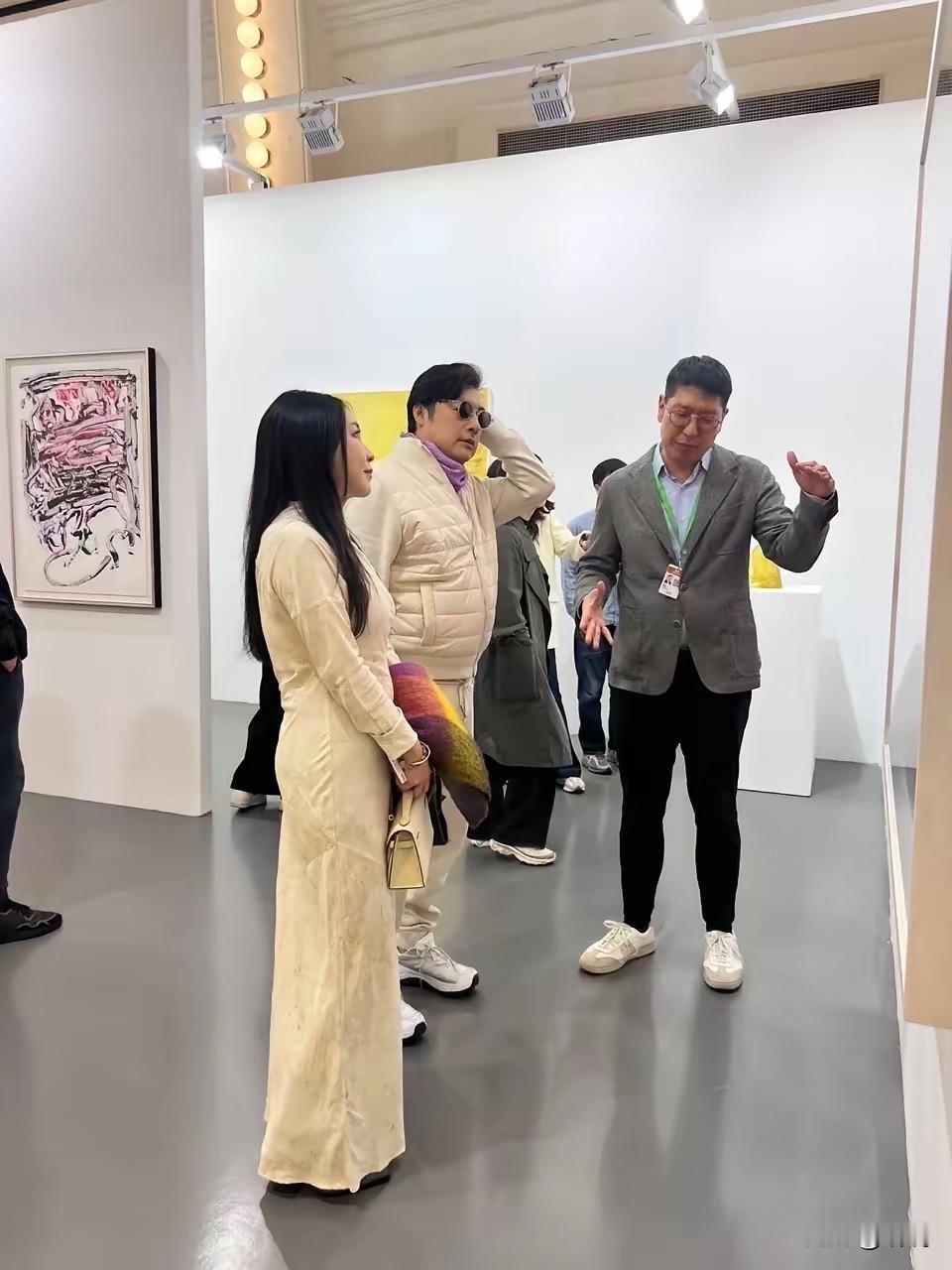 李湘前夫带长发美女看展,两人穿的好像情侣装,这一对离婚还是蛮体面的[捂脸]